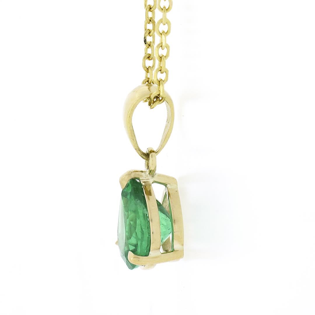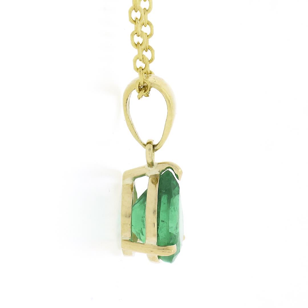 A new solid 18k yellow gold pendant necklace, with 1 gia certified pead cut natural emerald (2.14ct). 18 inch cable link chain, 4.10 grams total weight, pendant measures 18.90x9.25mm. Comes with all original relevant certifications.