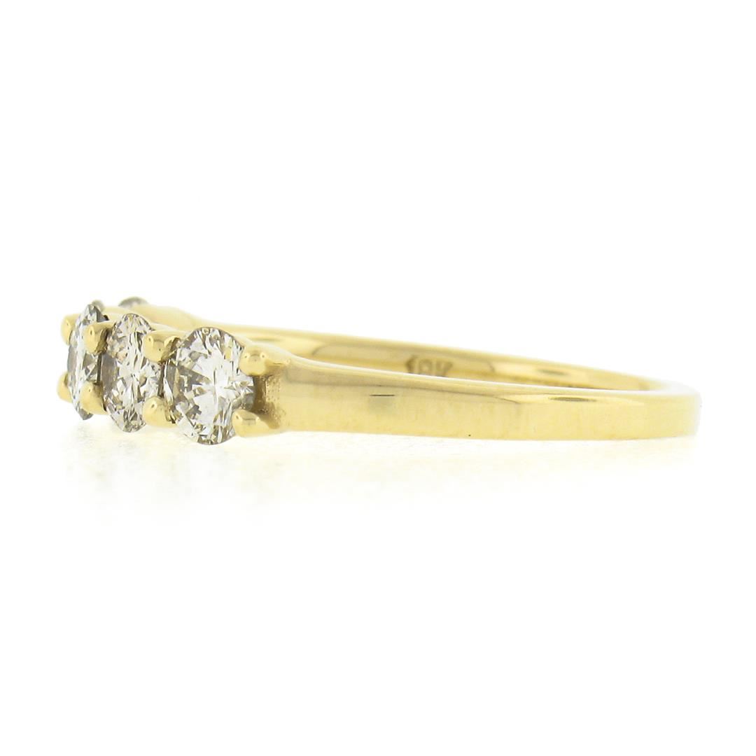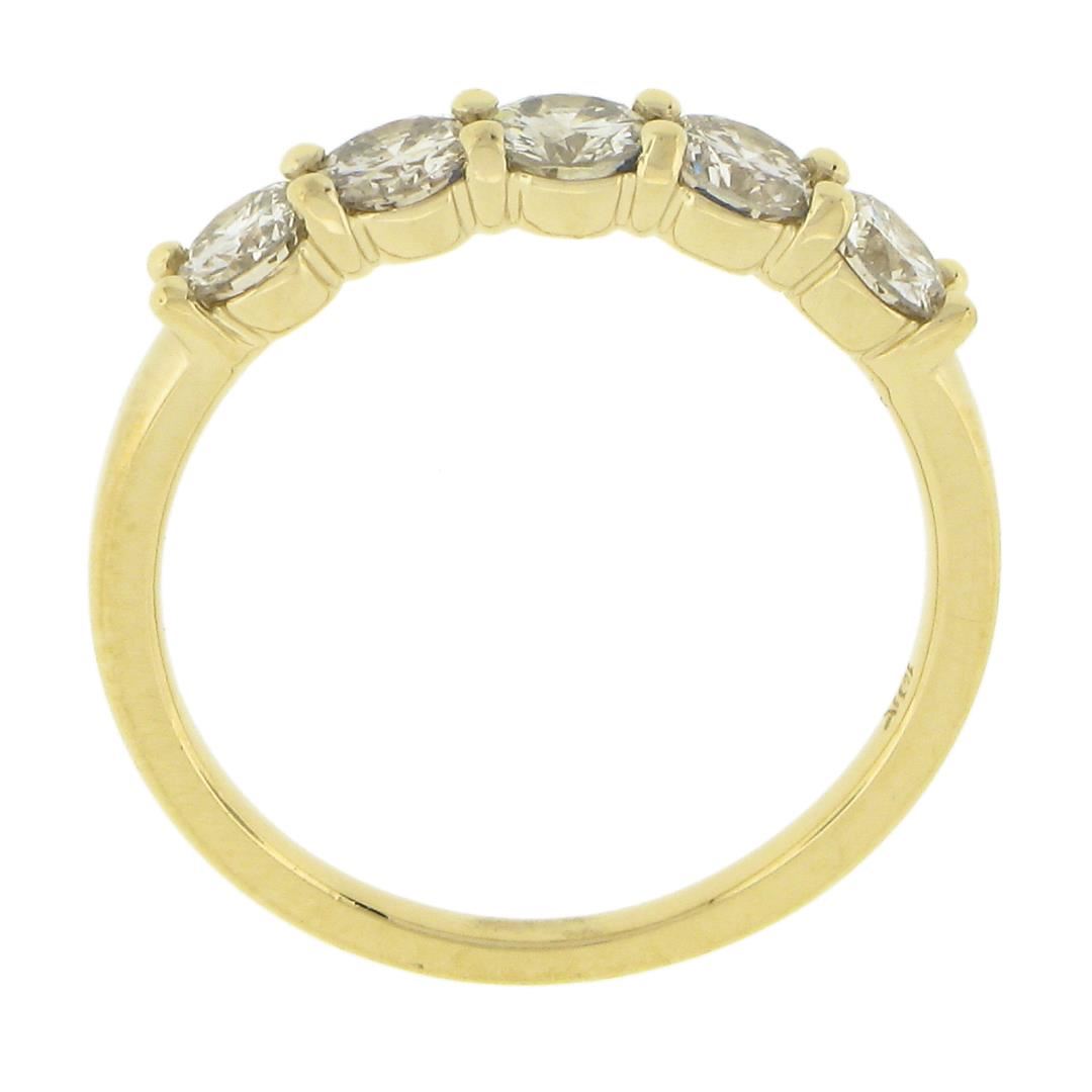 a new solid 18k yellow gold band ring, with 5 round cut natural diamonds (K-L / Light Brown - SI1-SI2 ; 0.92ctw). The ring is size 6.5, weighs a total of 2.75 grams, and measures 3.8mm wide.