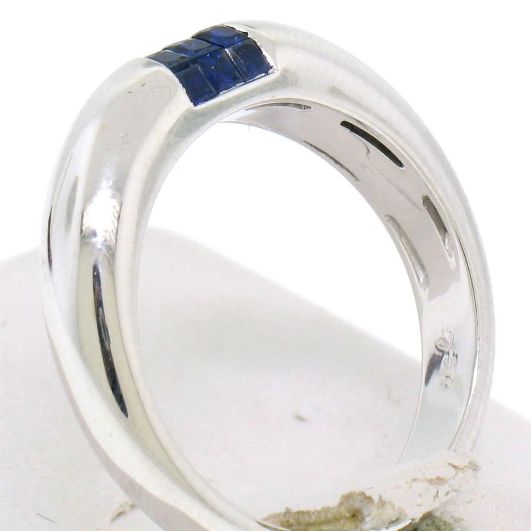 NEW 18k White Gold 0.65ctw Invisible Set Royal Blue Princess Sapphire Band Ring. Please see photos and description for all available information. A new solid 18k white gold band ring, with 12 princess cut natural sapphires (0.65ctw). The ring is size 6.5, weighs a total of 6.30 grams, and measures 4.79mm wide.