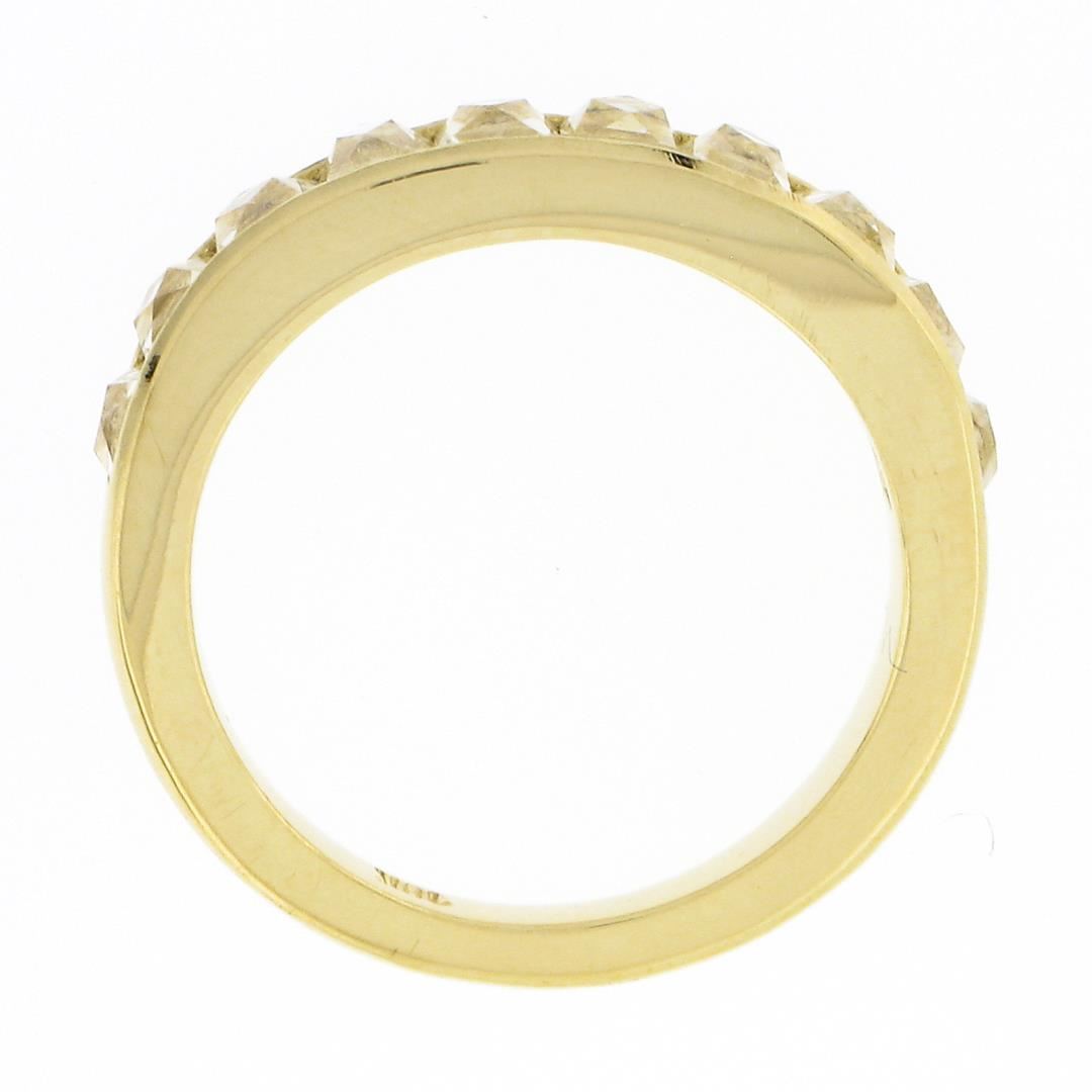 A new solid 18k yellow gold band ring, with 10 French cut natural diamonds (H/I - VVS2/VS1 ; 1.75ctw). The ring is size 5.0, weighs a total of 4.12 grams, and measures 3.60mm wide.