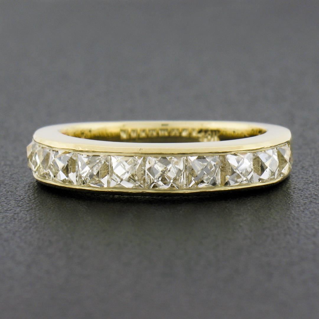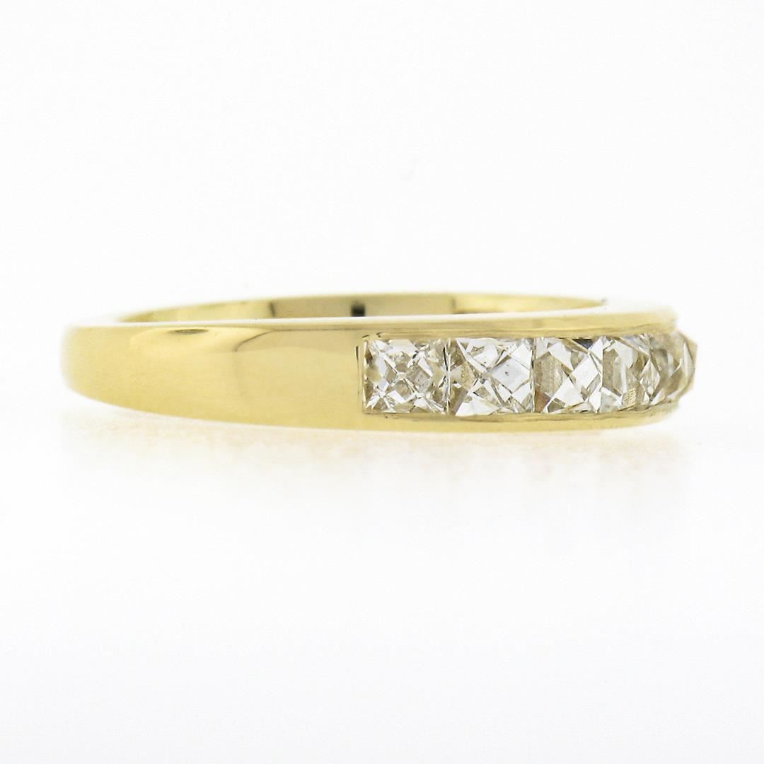 A new solid 18k yellow gold band ring, with 10 French cut natural diamonds (H/I - VVS2/VS1 ; 1.75ctw). The ring is size 5.0, weighs a total of 4.12 grams, and measures 3.60mm wide.