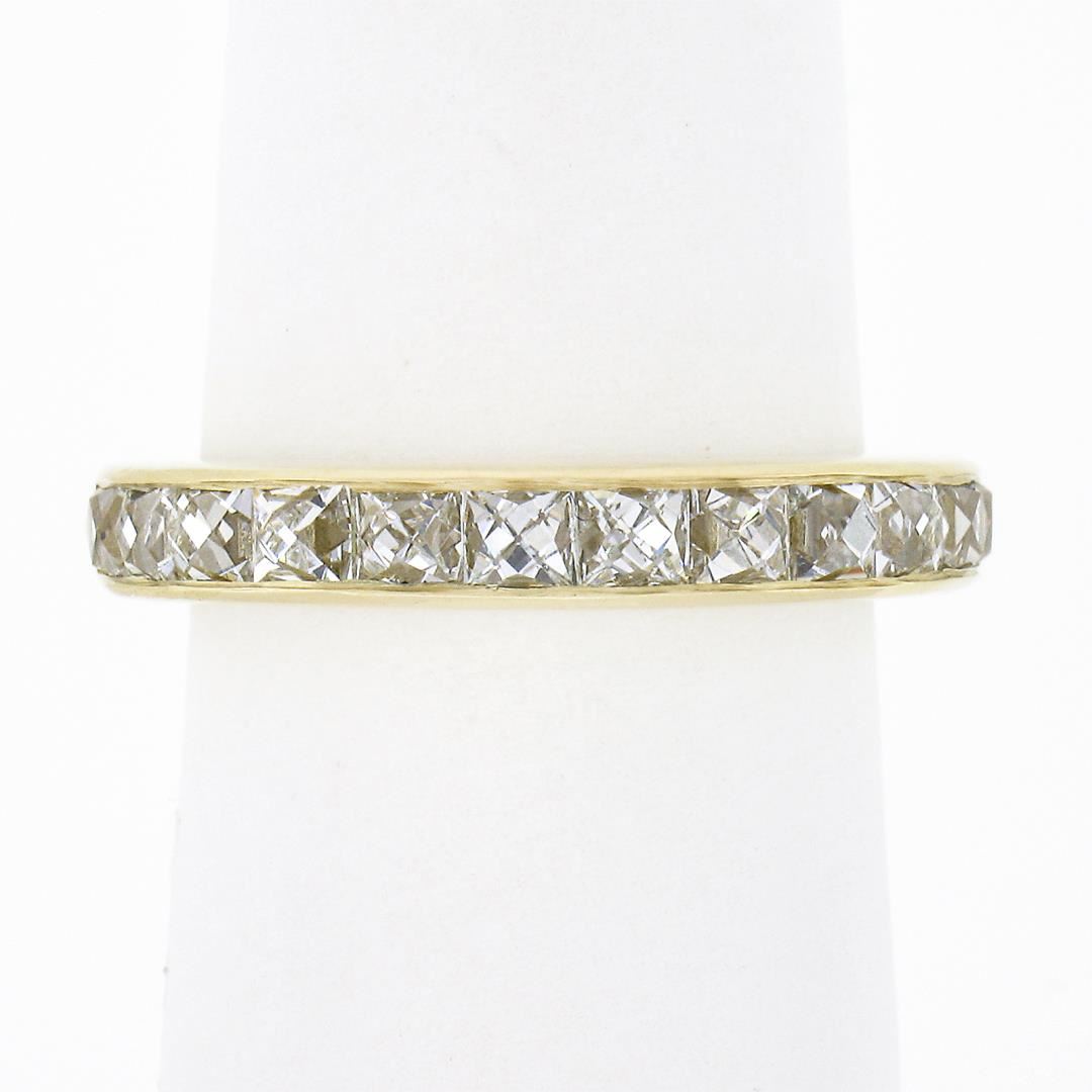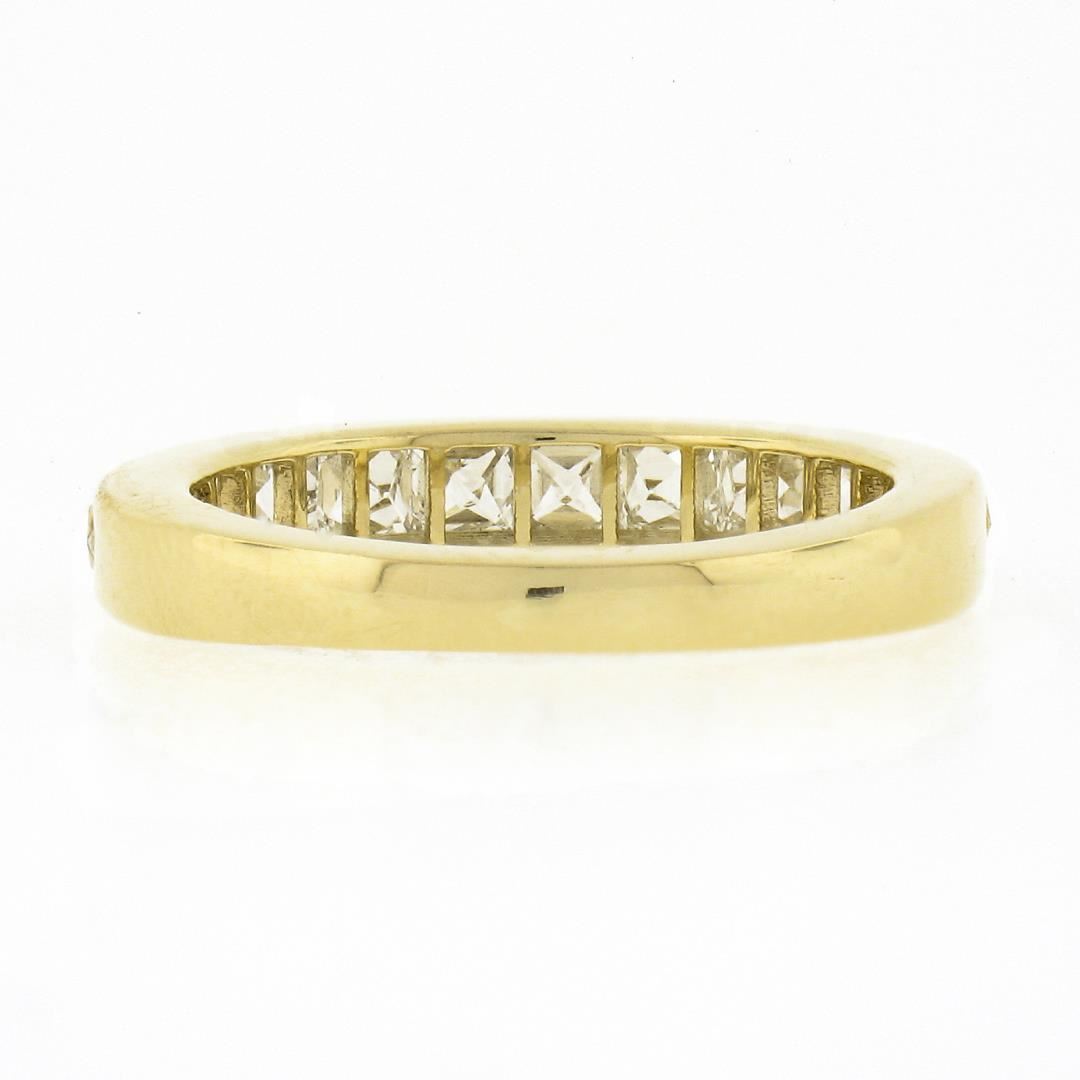 A new solid 18k yellow gold stack band ring, with 12 square french cut natural diamonds (H/I - VVS2/VS1 ; 2.0ctw). The ring is size 6.0, weighs a total of 4.47 grams, and measures 3.60mm wide.