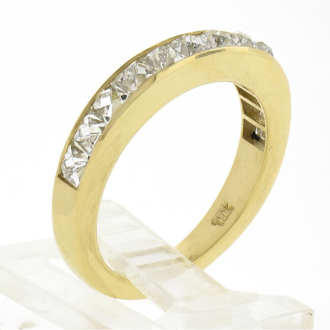 A new solid 18k yellow gold stack band ring, with 12 square french cut natural diamonds (H/I - VVS2/VS1 ; 2.0ctw). The ring is size 6.0, weighs a total of 4.47 grams, and measures 3.60mm wide.