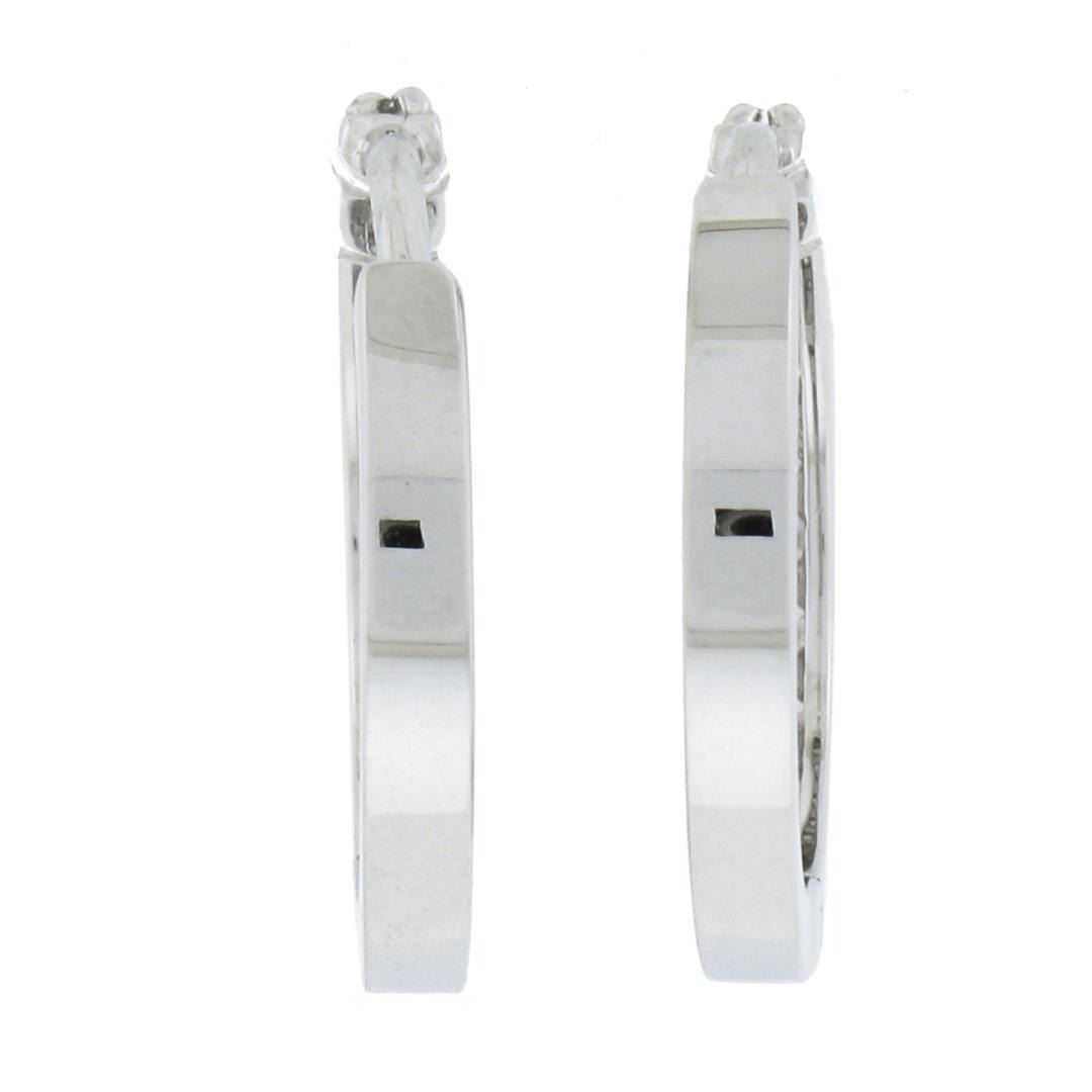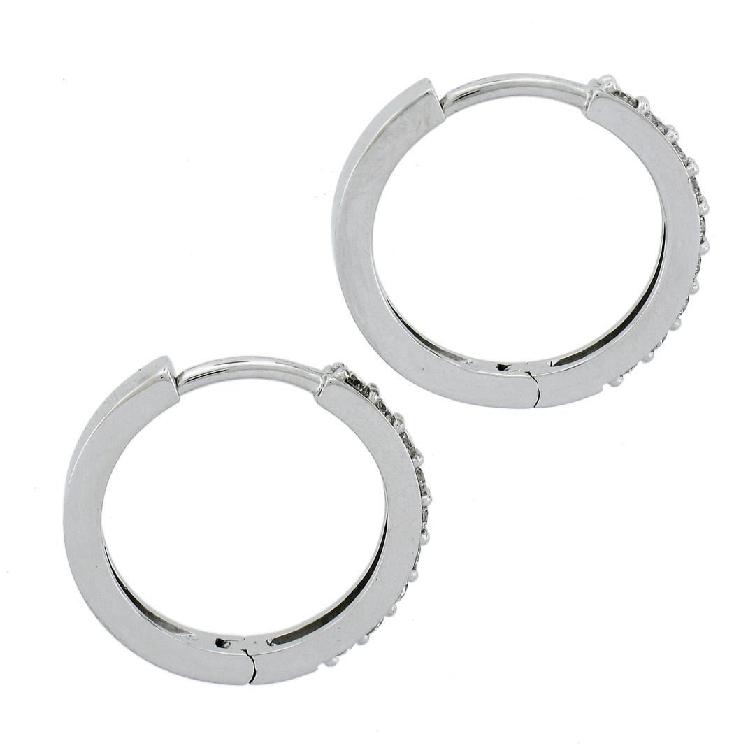 A new solid 14k white gold hoop earrings, with 18 round cut natural diamonds (F/G - VS1/VS2 ; 0.32ctw). The earrings measure approximately 15.6x2mm and weigh a total of 2.49 grams.