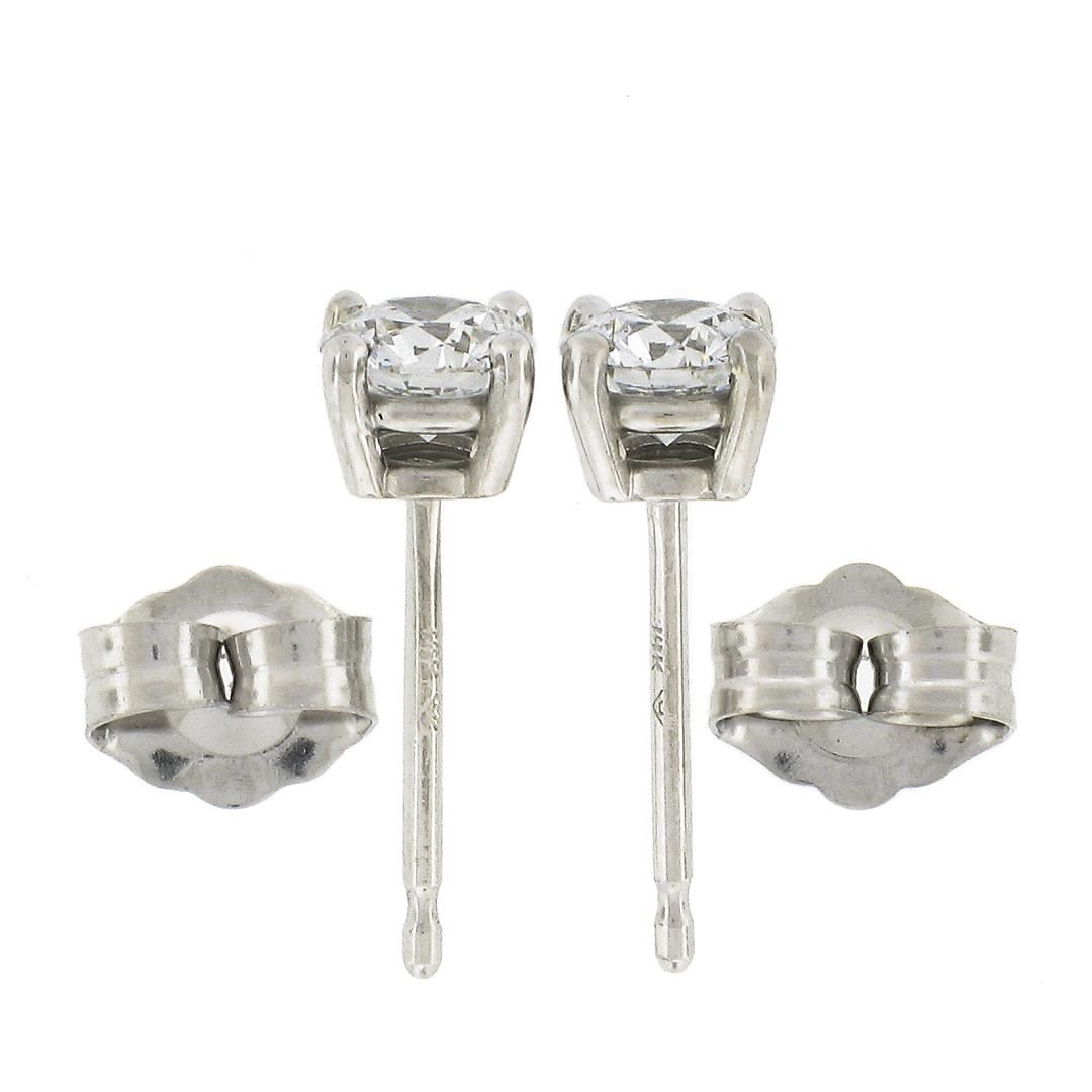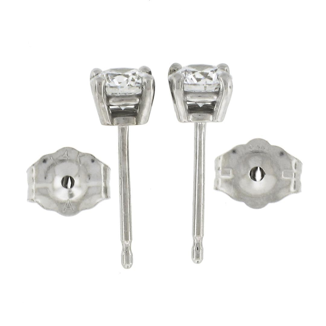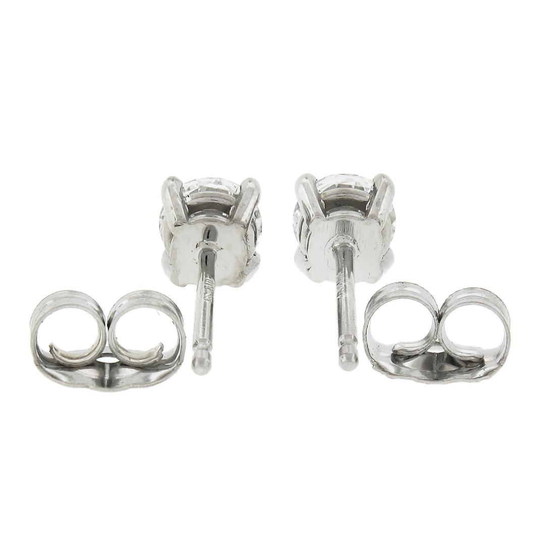 A new solid 14k white gold stud earrings, with 2 round cut natural diamonds (F/G - VS1-VS2 ; 0.50ctw). The earrings measure approximately 5.1mm in diameter and weigh a total of 0.70 grams.