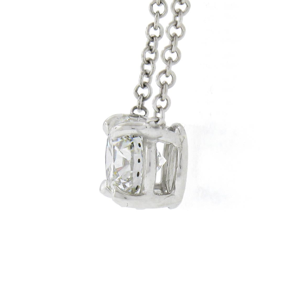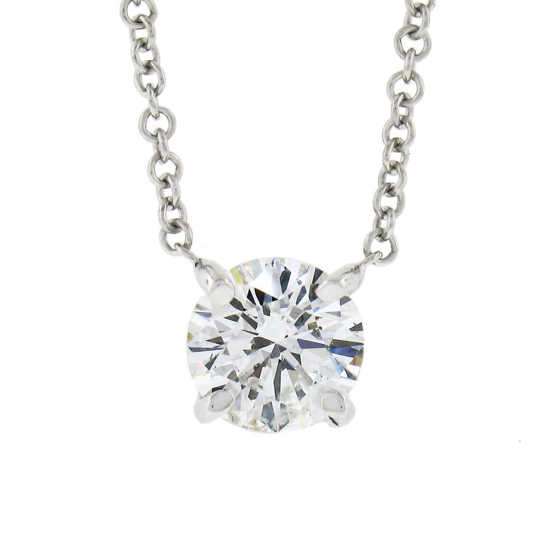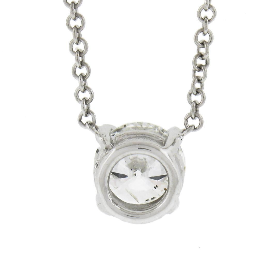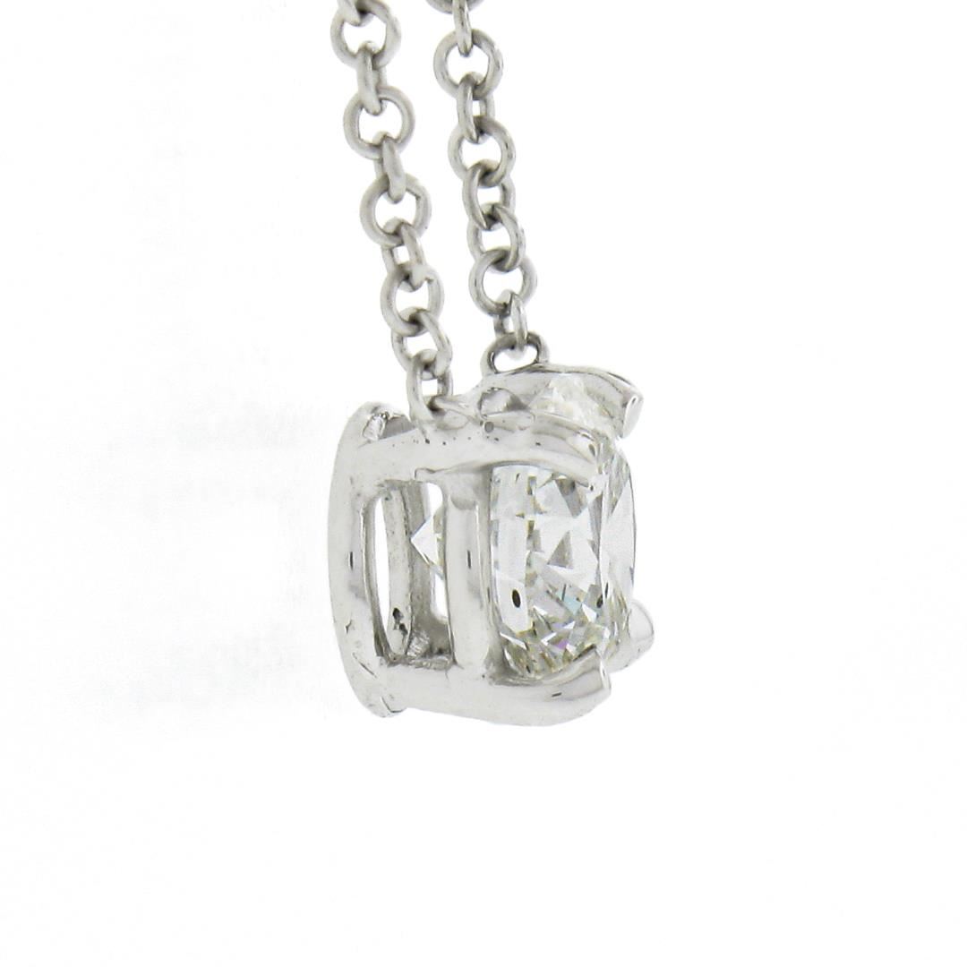 A new solid 14k white gold pendant necklace, with 1 round brilliant cut natural diamond (G -SI2 ; 0.57ct). Adjustabel 16 & 18 inch cable link chain, 1.96 grams total weight, pendant diameter measures 5.3mm.