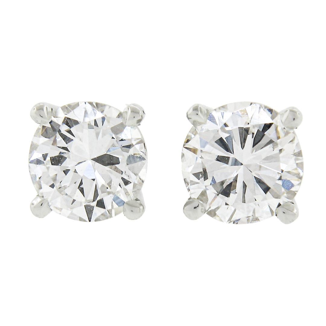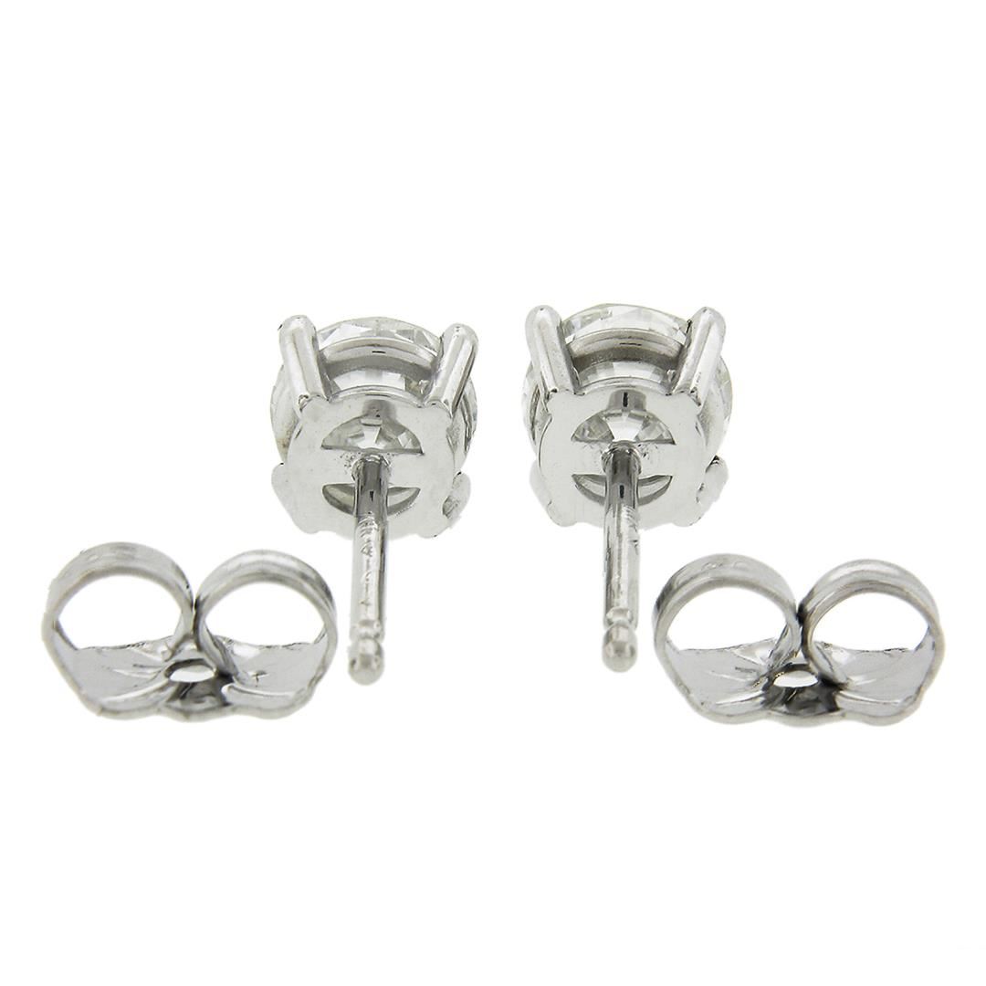 A new solid 14k white gold stud earrings, with 2 round cut natural diamonds (F/G - VS1/VS2 ; 0.80ctw). The earrings measure approximately 4.7mm and weigh a total of 0.87 grams.
