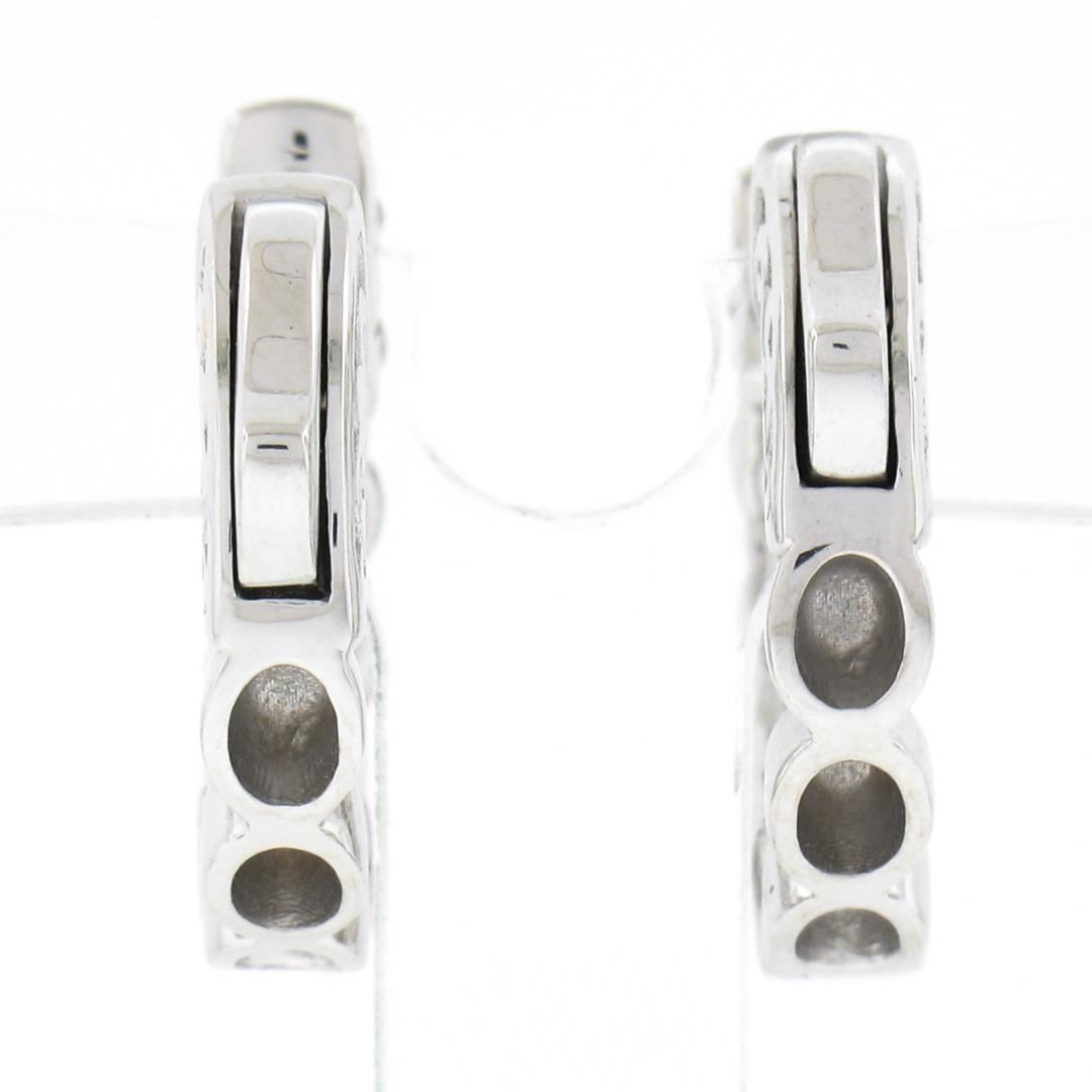 A new solid 14k white gold pair of hoop earrings, with 10 round brilliant cut natural diamonds (G/H - VS1/VS2 ; 1.23ctw). The earrings measure approximately 15.30x3.20mm and weigh a total of 4.71 grams.