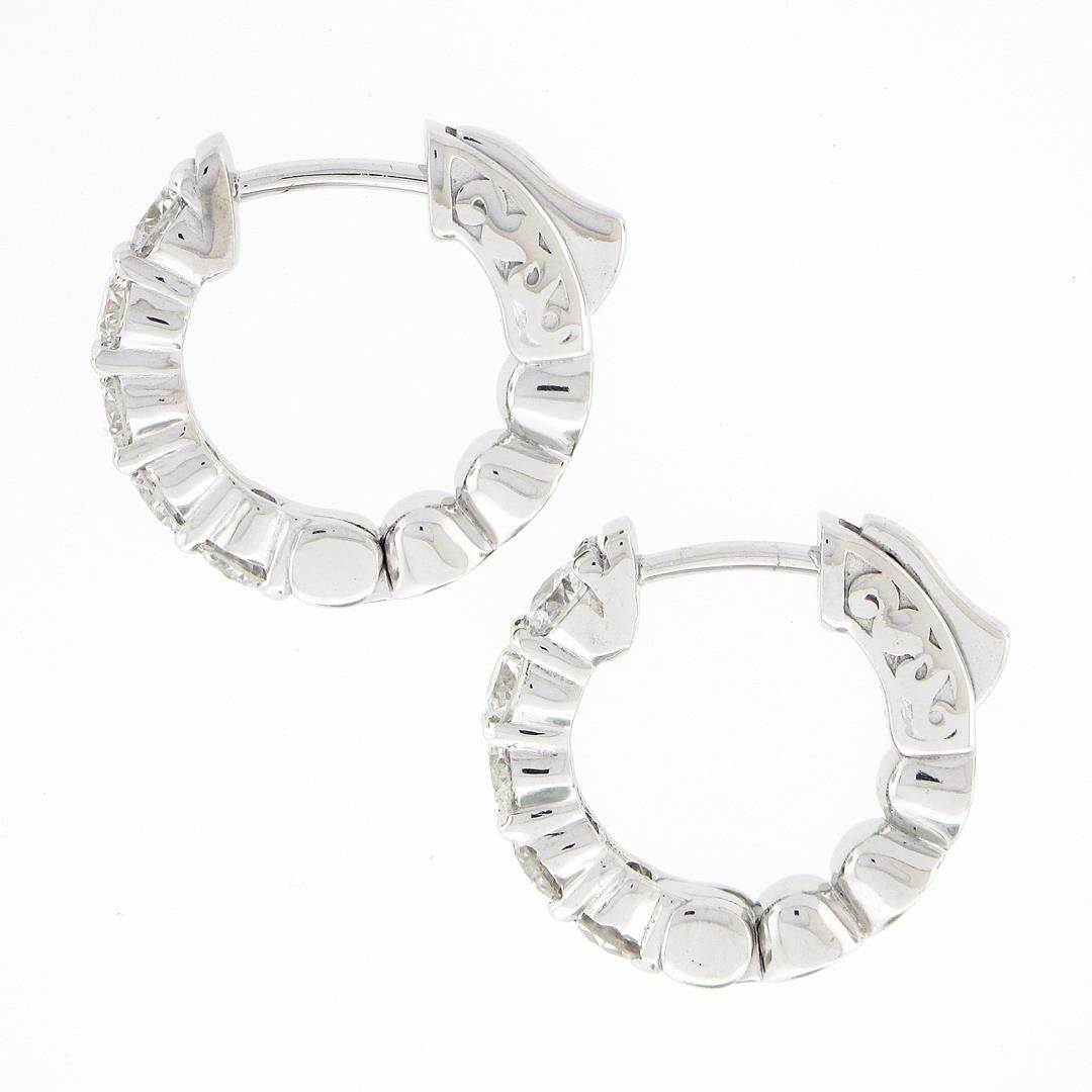 A new solid 14k white gold pair of hoop earrings, with 10 round brilliant cut natural diamonds (G/H - VS1/VS2 ; 1.23ctw). The earrings measure approximately 15.30x3.20mm and weigh a total of 4.71 grams.