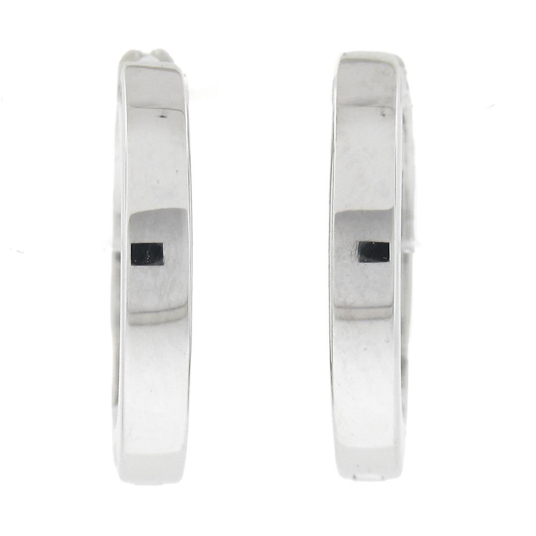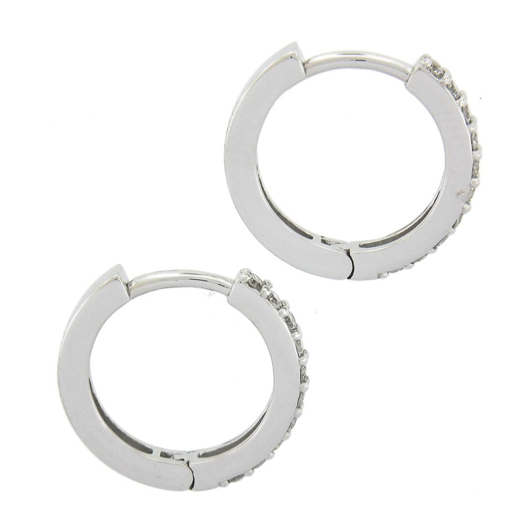 A new solid 14k white gold hoop earrings, with 20 round brilliant cut natural diamonds (G/H - VS1/VS2 ; 0.20ctw). The earrings measure approximately 12.2x2.1mm and weigh a total of 1.71 grams.