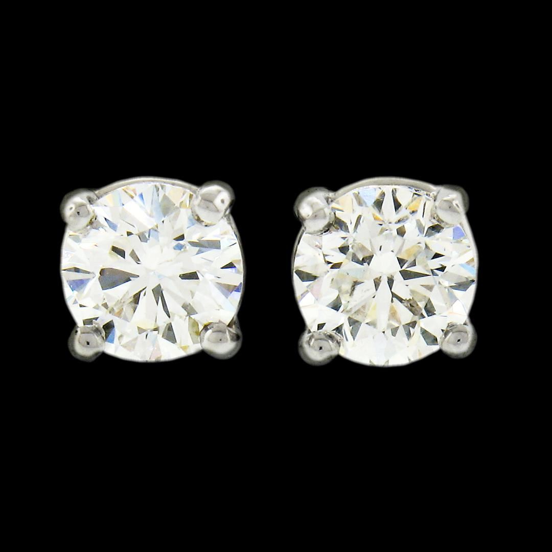 A new solid 14k white gold stud earrings, wirh 2 round brilliant cut natural diamonds (G/H - SI1/SI2 ; 0.75ctw). The earrings measure approximately 5.7mm in diameter and weigh a total of 1.05 grams.