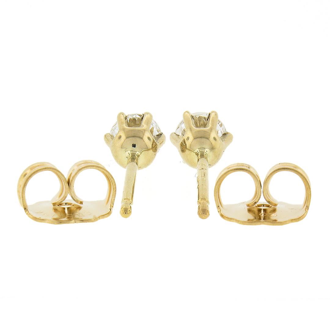 A new solid 14k yellow gold stud earrings, with 2 round cut natural diamonds (G/H - VS2/SI1 ; 0.31ctw). The earrings measure approximately 4.2mm in diameter and weigh a total of 0.67 grams.