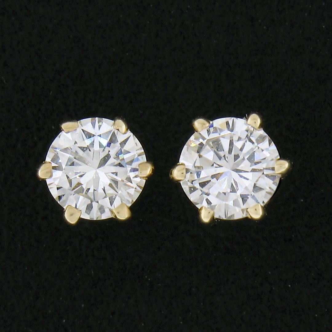 A new solid 14k yellow gold stud earrings, with 2 round cut natural diamonds (G/H - VS2/SI1 ; 0.31ctw). The earrings measure approximately 4.2mm in diameter and weigh a total of 0.67 grams.