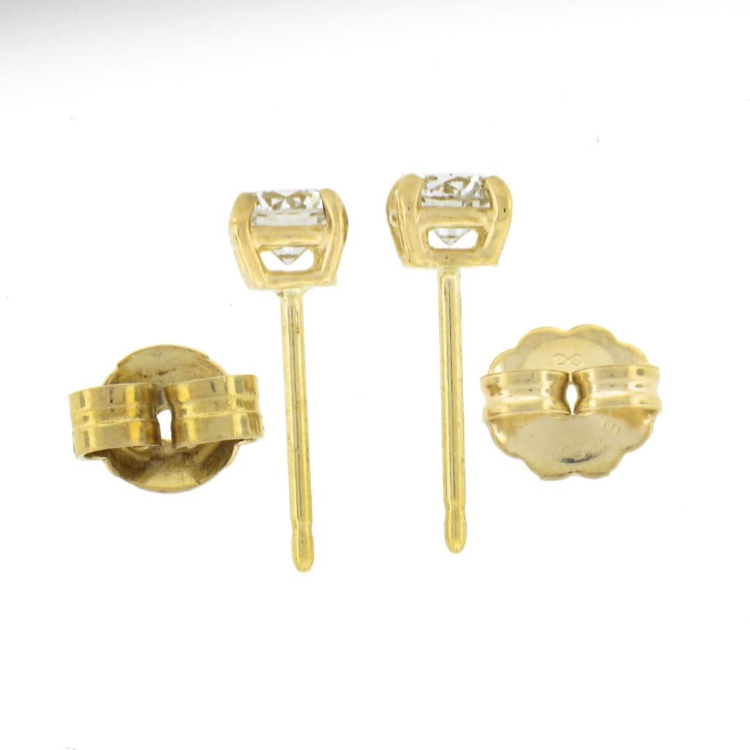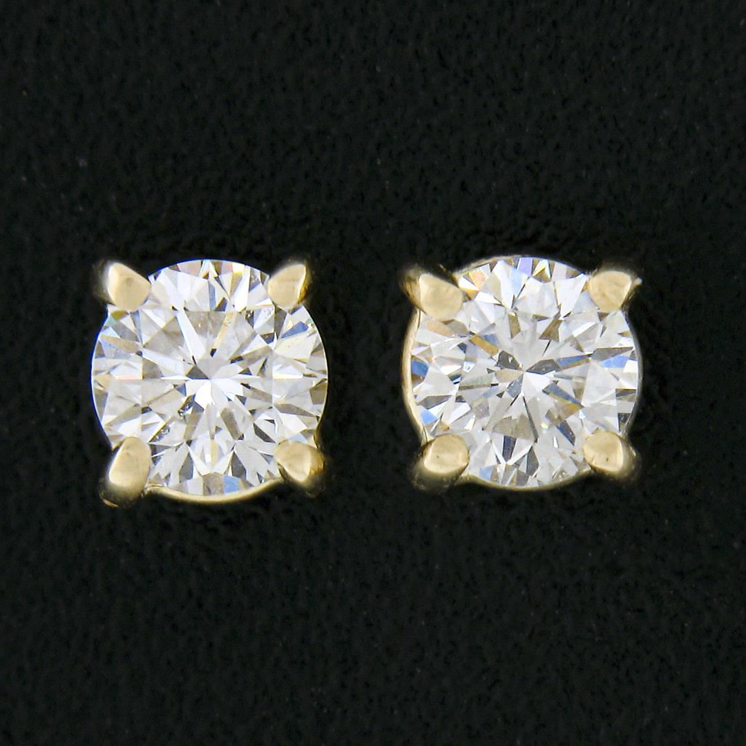 A new solid 14k yellow gold stud earrings, with 2 round cut natural diamonds (F/G - VS1/VS2; 0.44ctw). The earrings measure approximately 5.25mm in diameter and weigh a total of 0.86 grams.