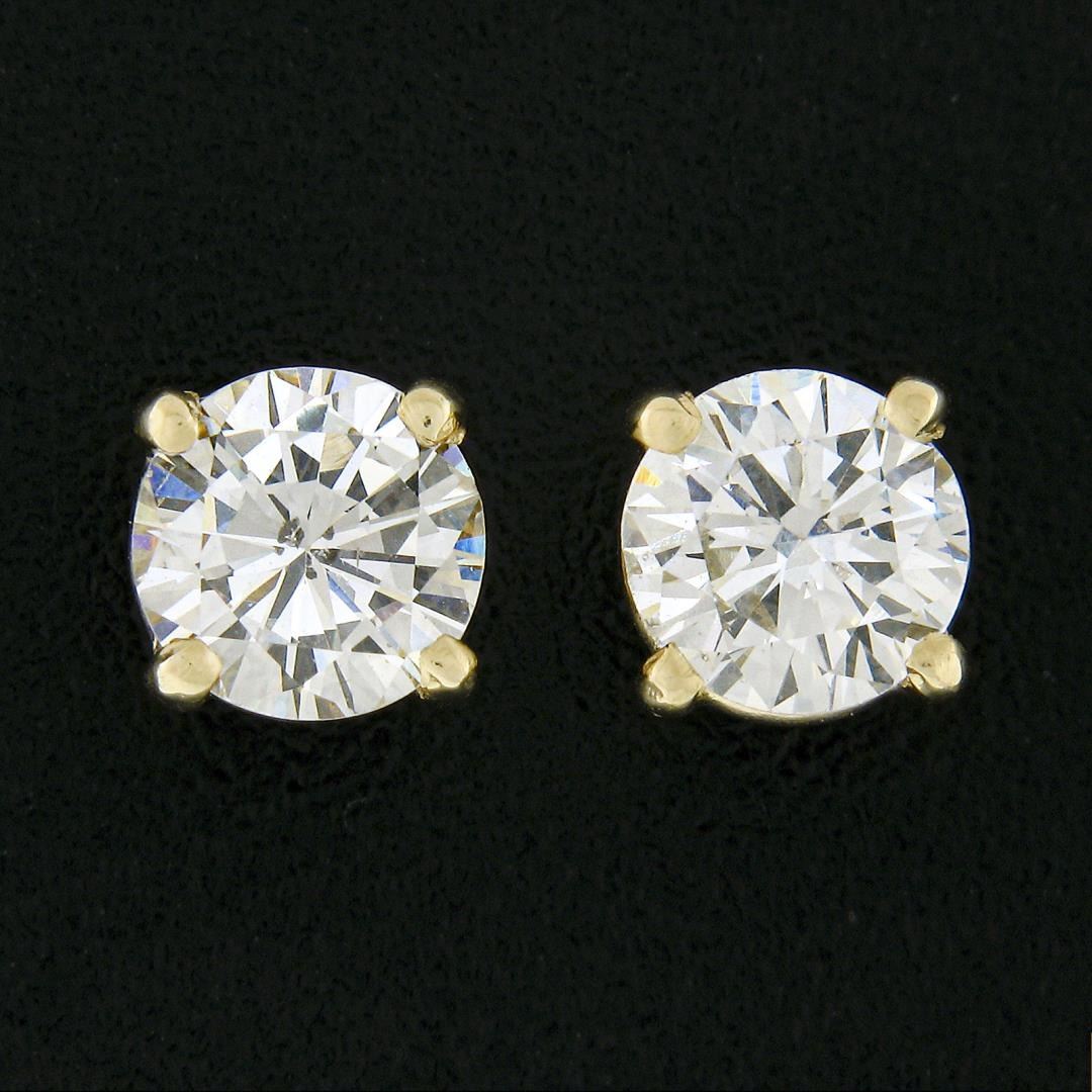 A new solid 14k yellow gold stud earrings, with 2 round cut natural diamonds (H/I - SI1/SI2; 0.82ctw). The earrings measure approximately 6mm in diameter and weigh a total of 1.15 grams.