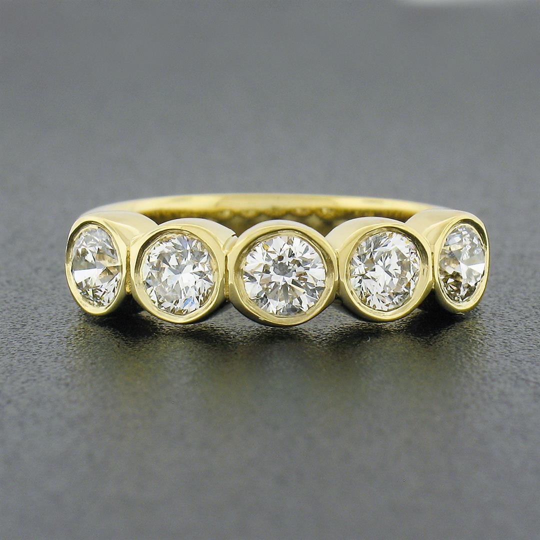 NEW Custom Made 18K Yellow Gold 1.21 ctw Bezel Diamond 5 Stone Wedding Band Ring