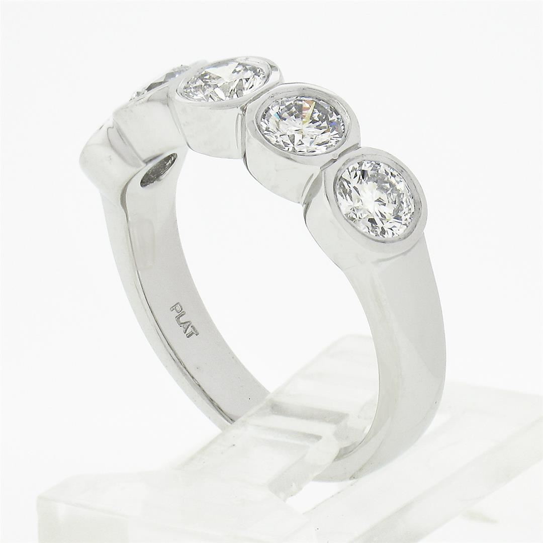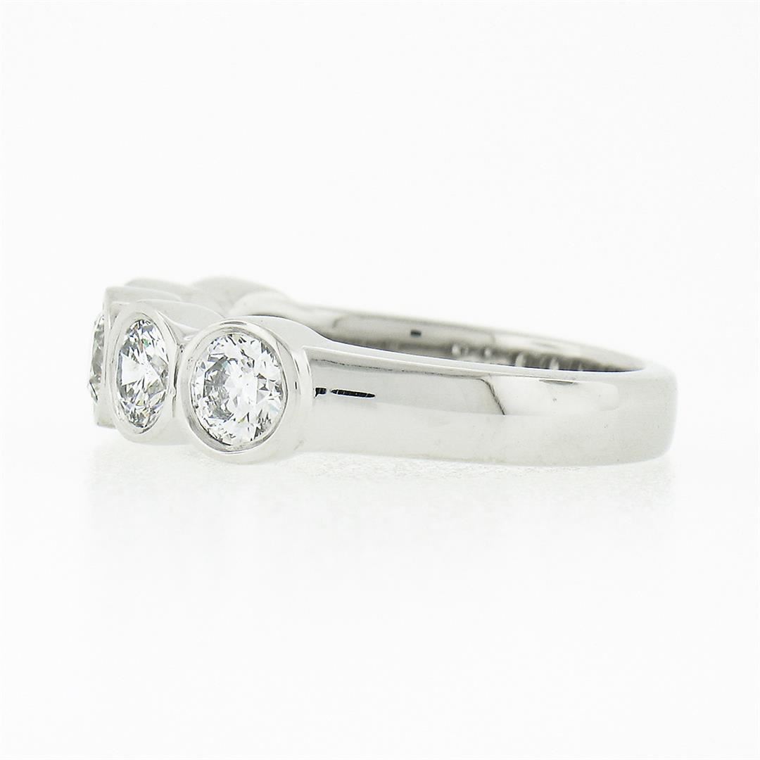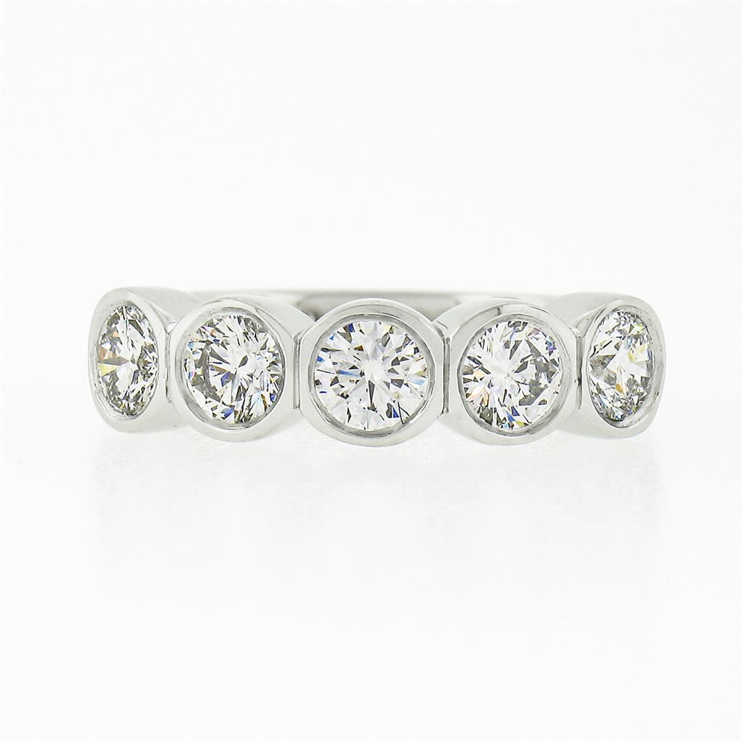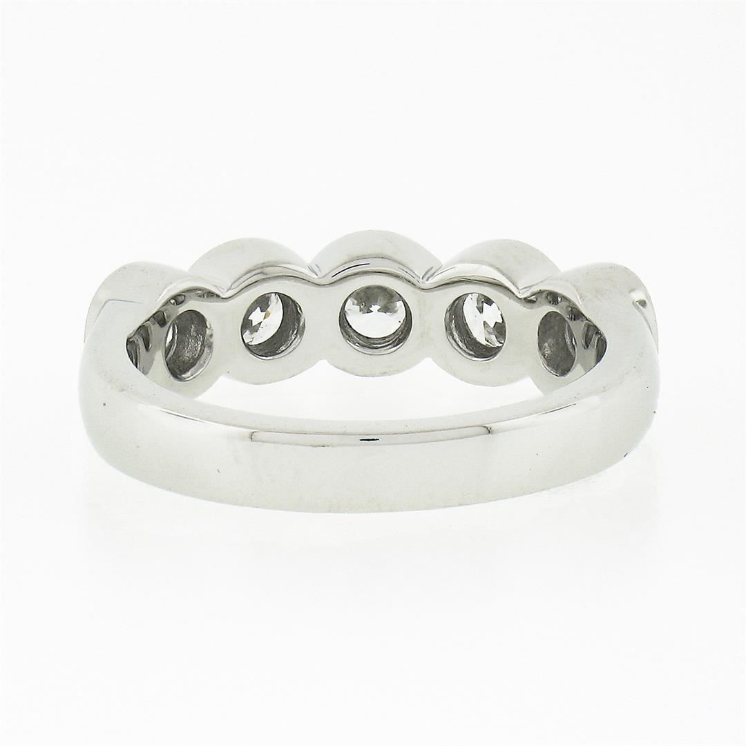 A new solid platinum band ring, with 5 round brilliant cut natural diamonds ( F/G - VS1/VS2 ; 1.19ctw). The ring is size 5.5, weighs a total of 8.13 grams, and measures 5.15mm wide.