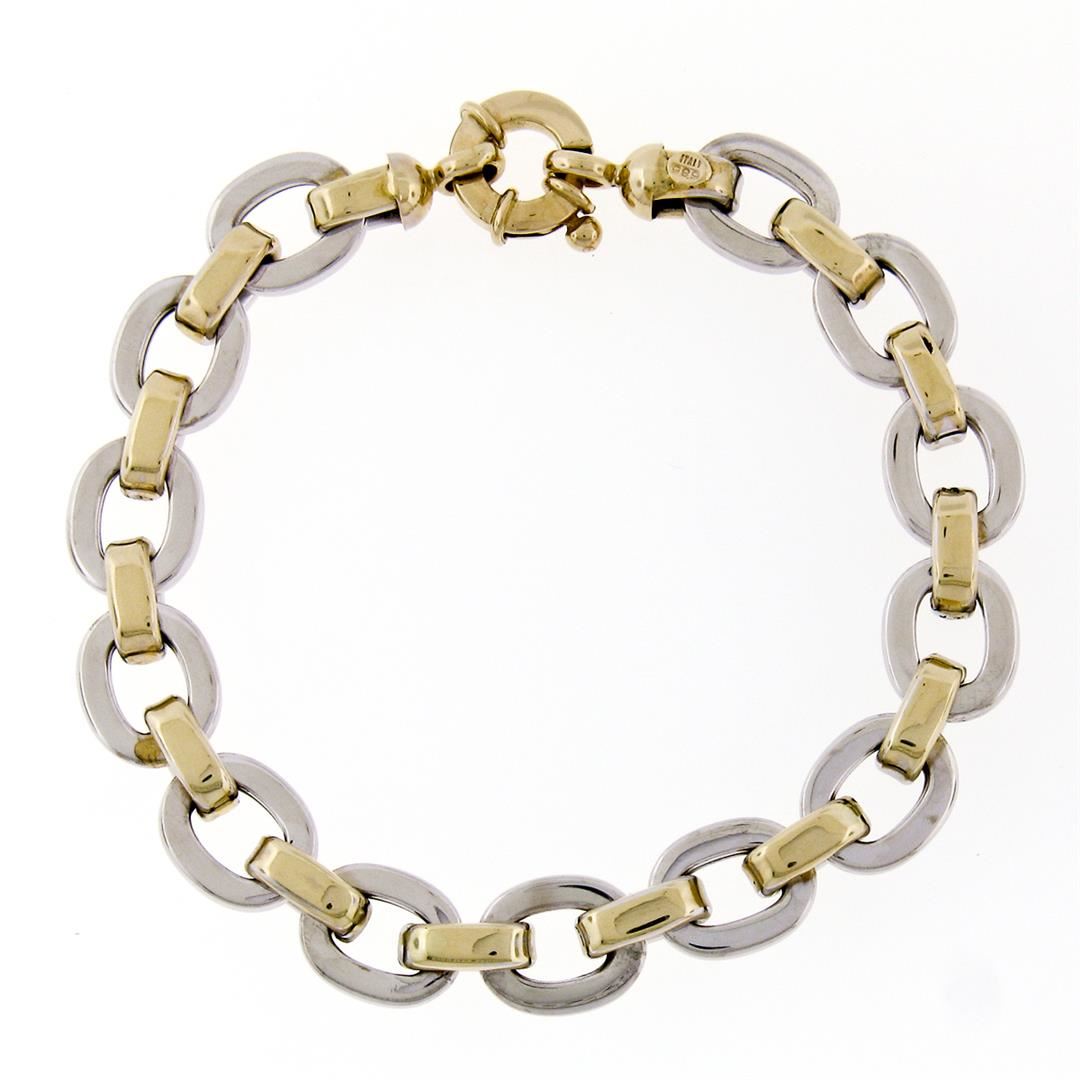 NEW Italian Solid 14K TT Gold 8  Interlocking Oval Link Chain Bracelet 16.98g