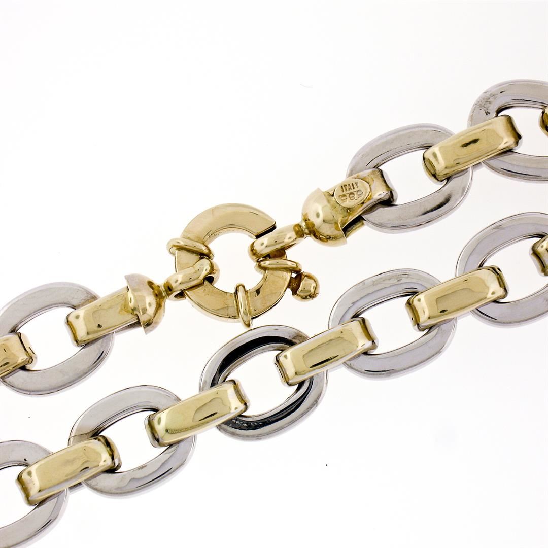 NEW Italian Solid 14K TT Gold 8" Interlocking Oval Link Chain Bracelet 16.98g