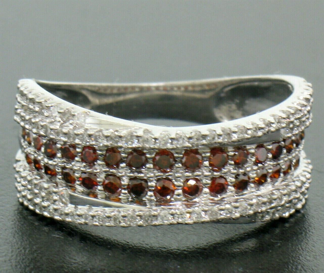 NEW Ladies 14k Gold 1.00ctw Round White & Brown Diamond Wide Crossover Band Ring. Please see photos and description for all available information. A new soldi 14k white gold crossover band ring, with (1.00ctw) 36 round brilliant cut natural brown diamonds (SI1/SI2), and 98 round brilliant cut natural diamonds (G/H- SI1/SI2). The ring is size 7.0, weighs a total of 2.90 grams, and measures 7.90mm wide.