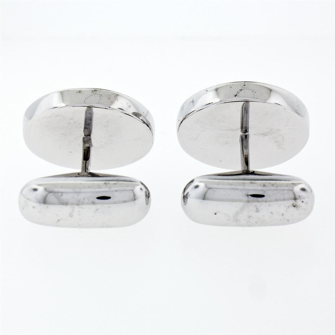 A new solid 14k white gold ribbed cufflinks. These cuff links have a swivel design with a clearance of 13.0mm, weigh a total of 9.50 grams, and the front panels measure 15.50mm in diameter.