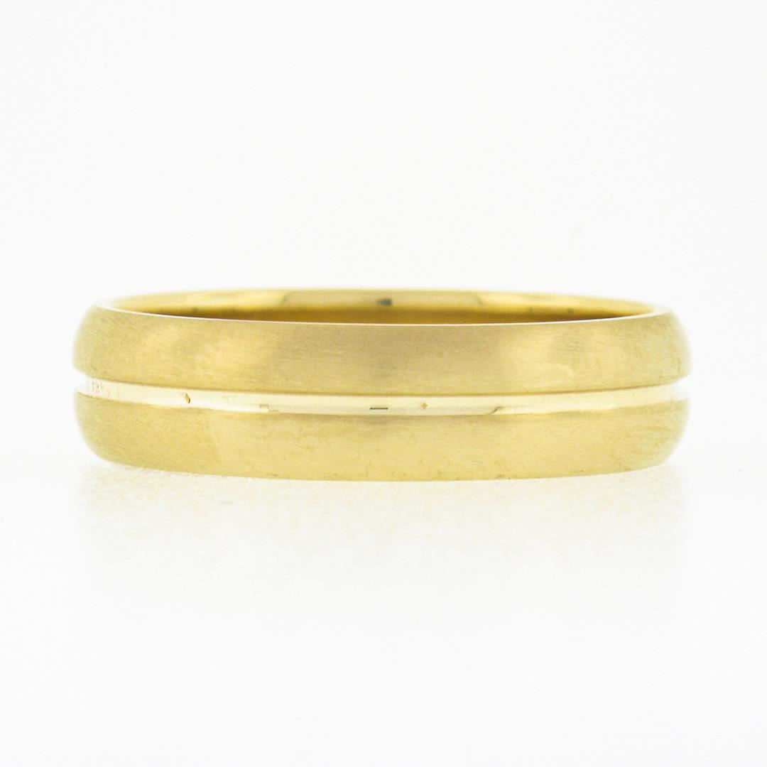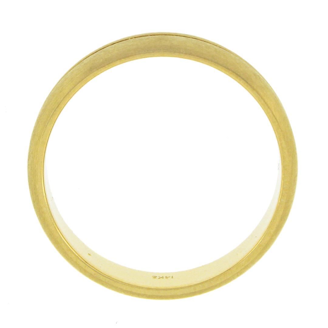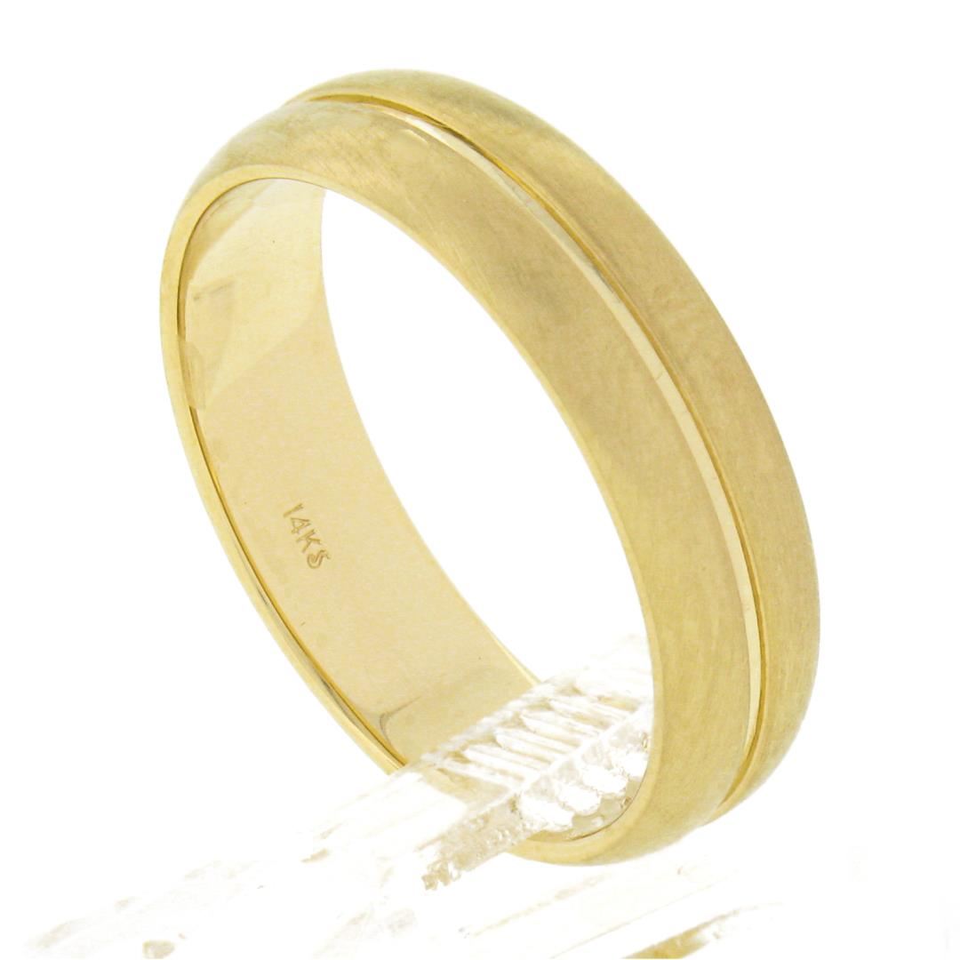 A new solid 14k yellow gold mens wide band ring. The ring is size 10.0, weighs a total of 5.81 grams, and measures 5.6mm wide.