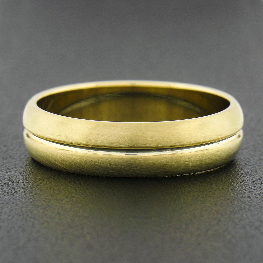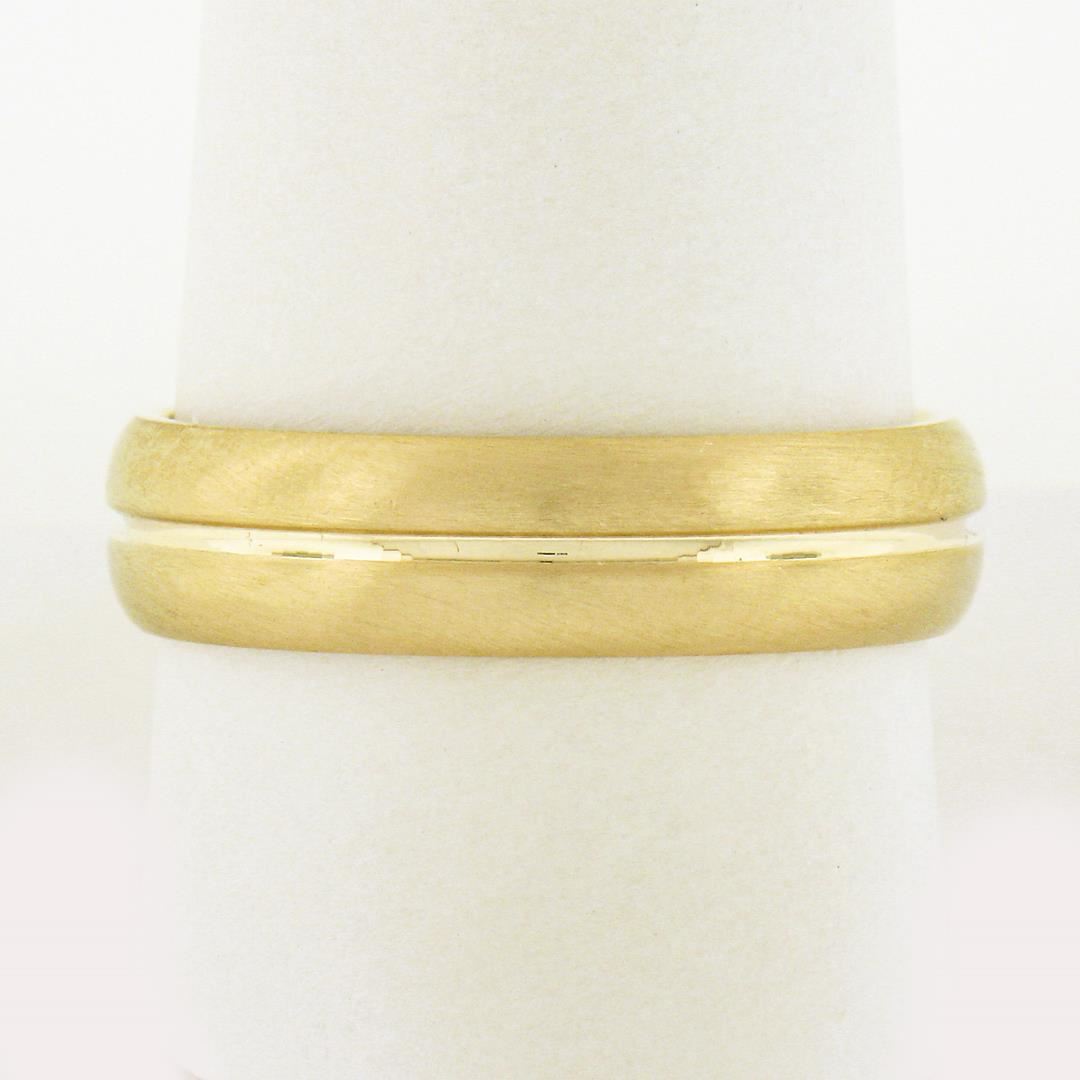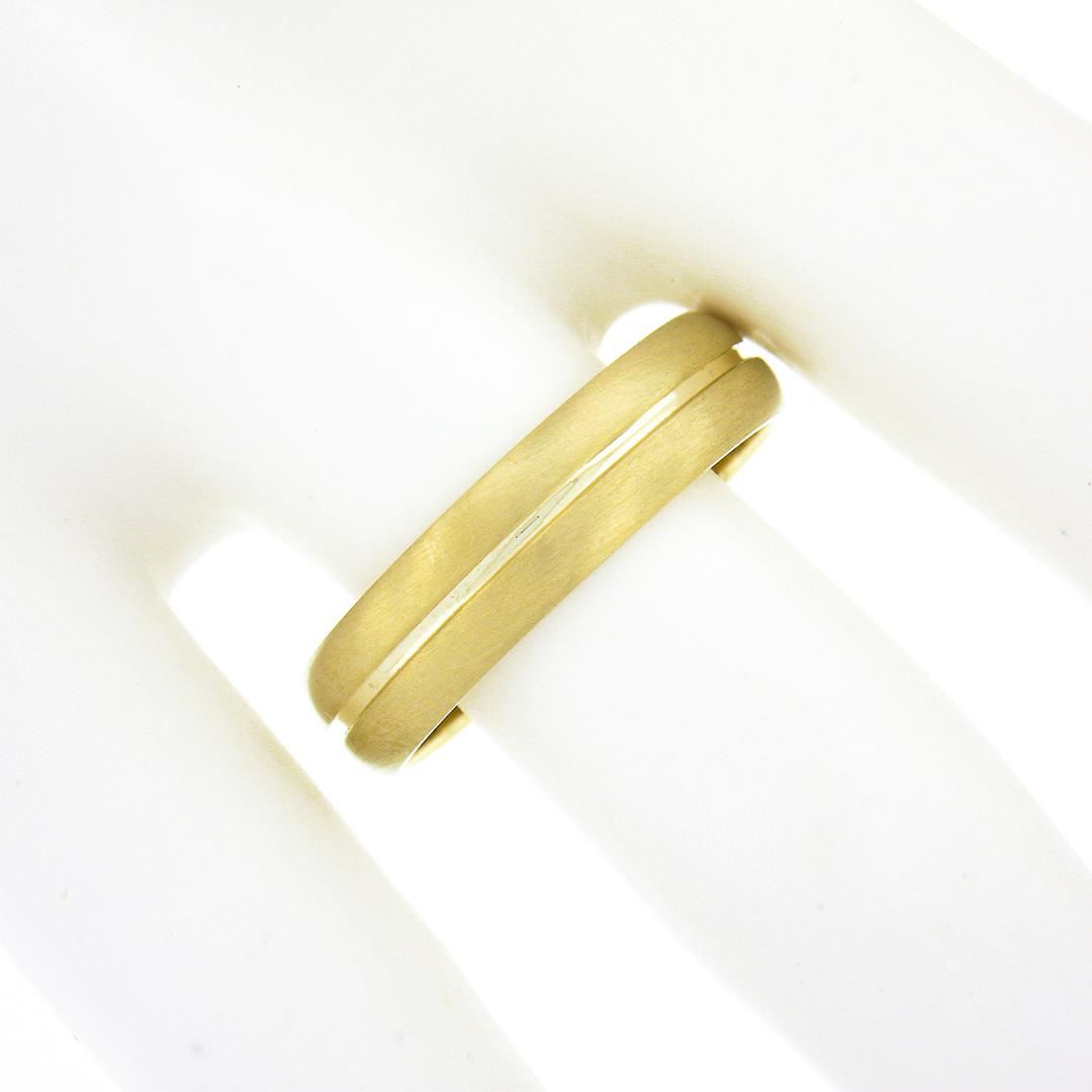 A new solid 14k yellow gold mens wide band ring. The ring is size 10.0, weighs a total of 5.81 grams, and measures 5.6mm wide.