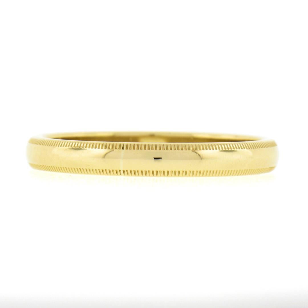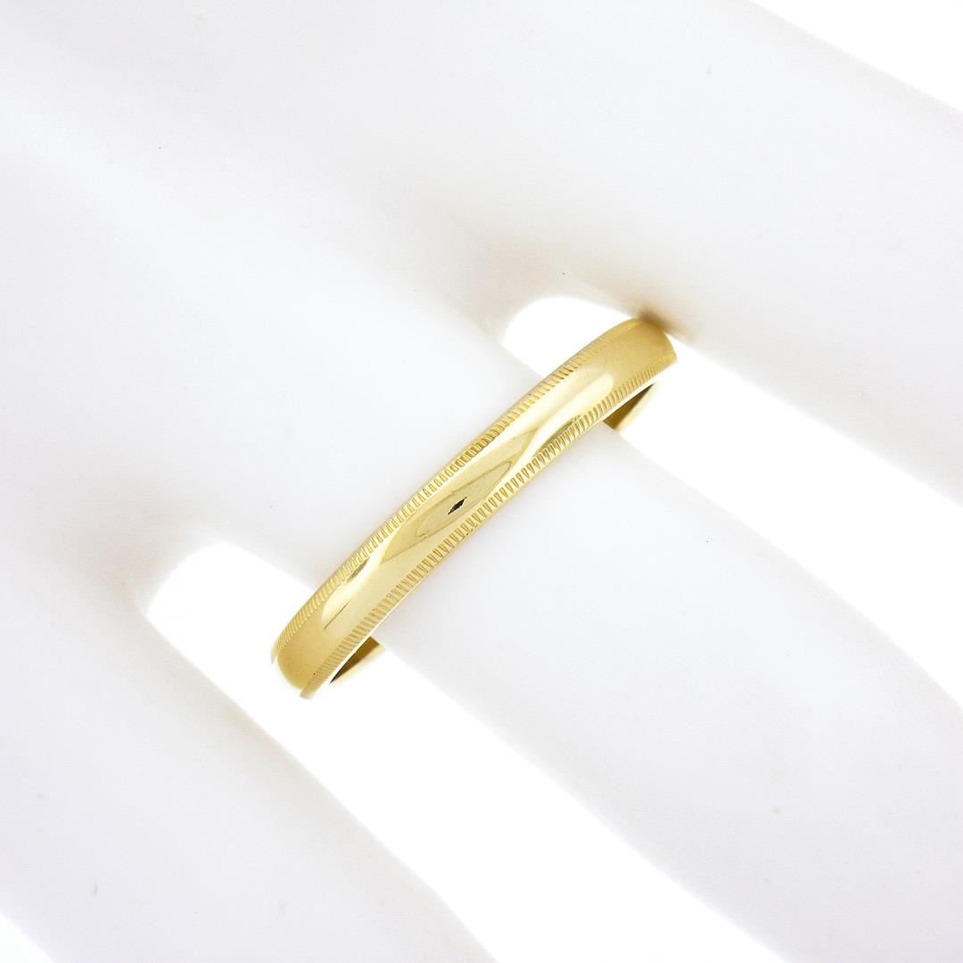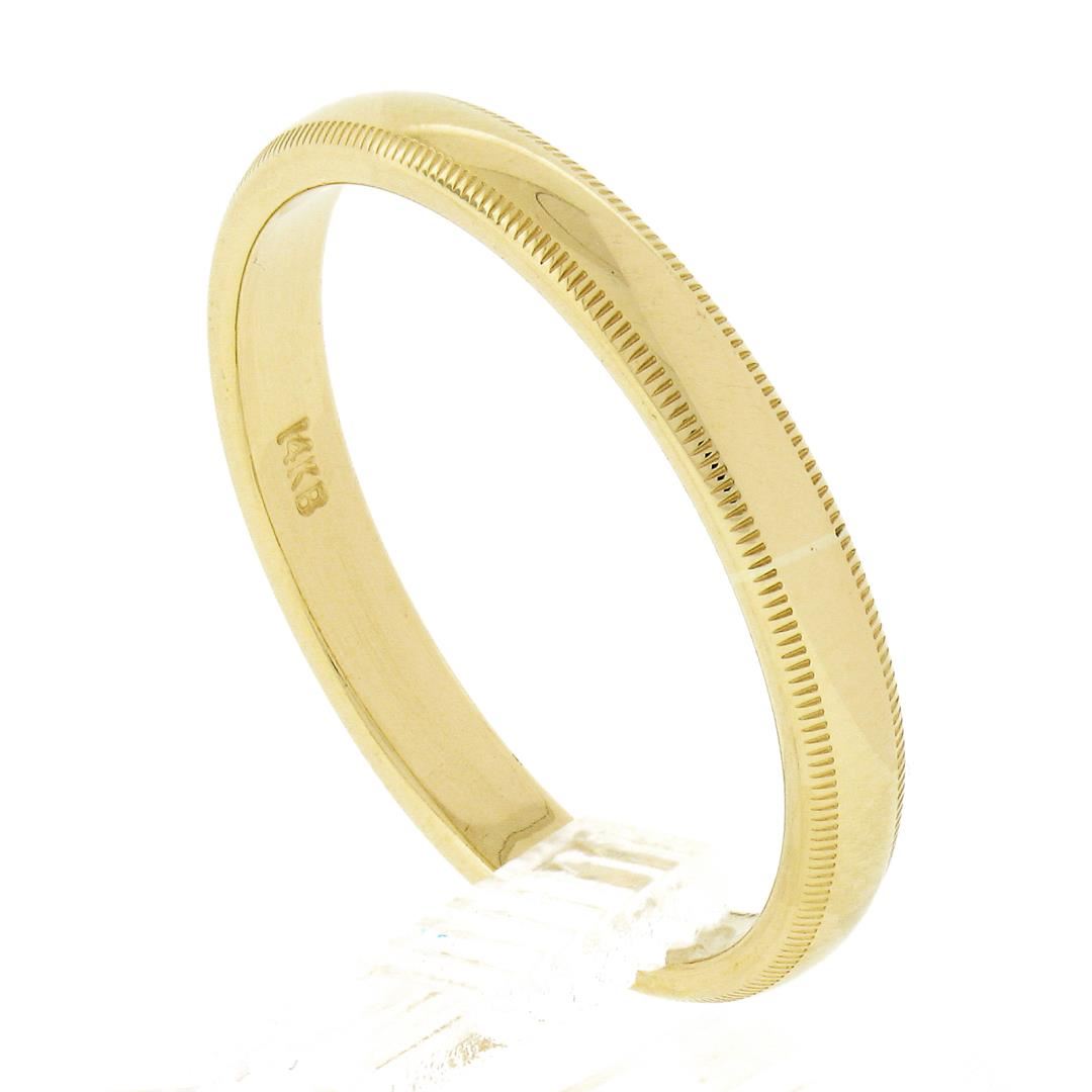 A new solid 14k yellow gold mens band ring. The ring is size 10.0, weighs a total of 3.34 grams, and measures 3mm wide.