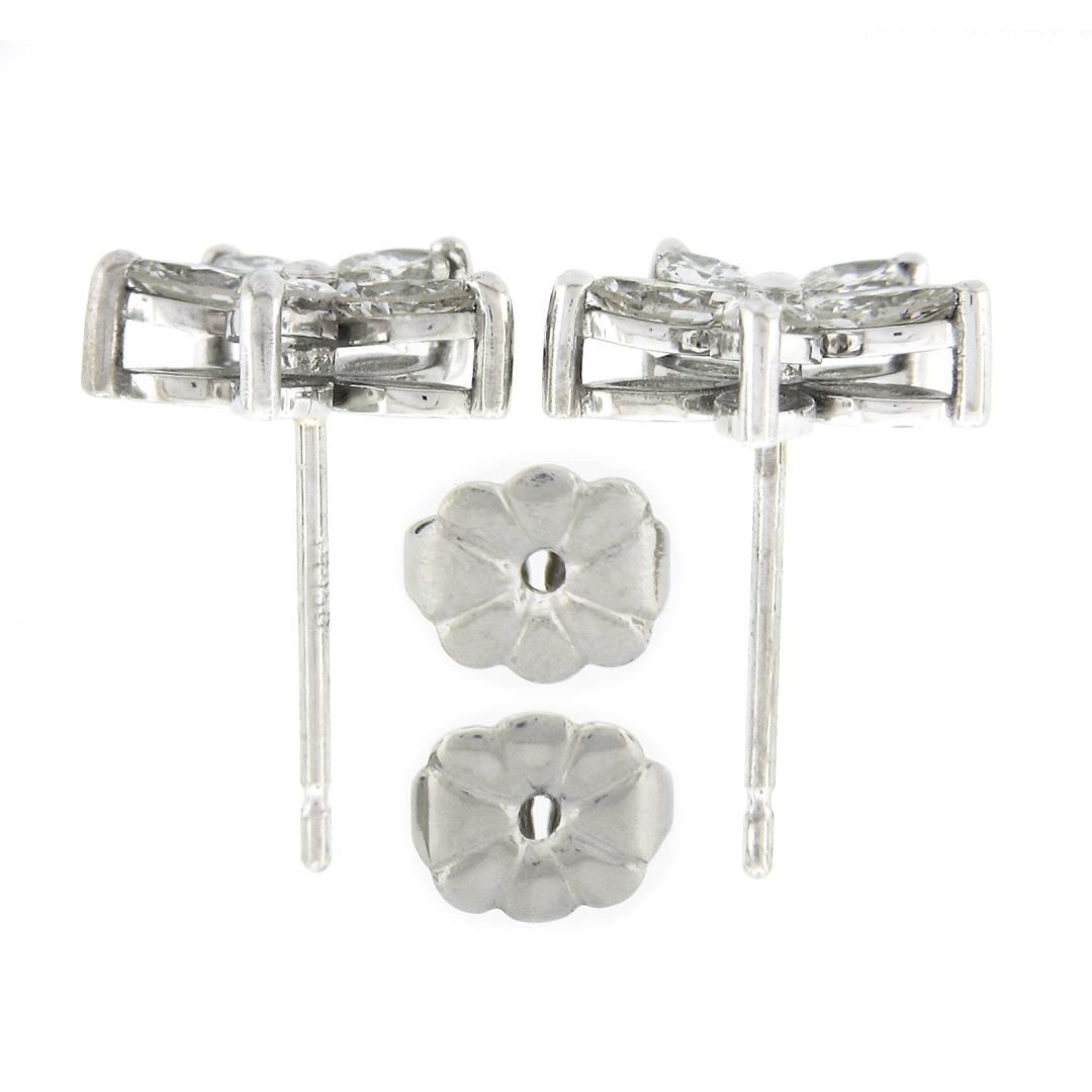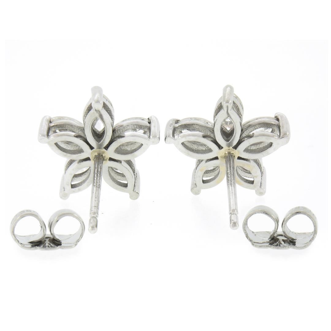 A new solid platinum flower stud earrings, with 10 marquise cut natural diamonds (H/I - VS1/VS2 ; 1.04ctw). The earrings measure approximately 10.80mm point to point, and weigh a total of 2.93 grams.