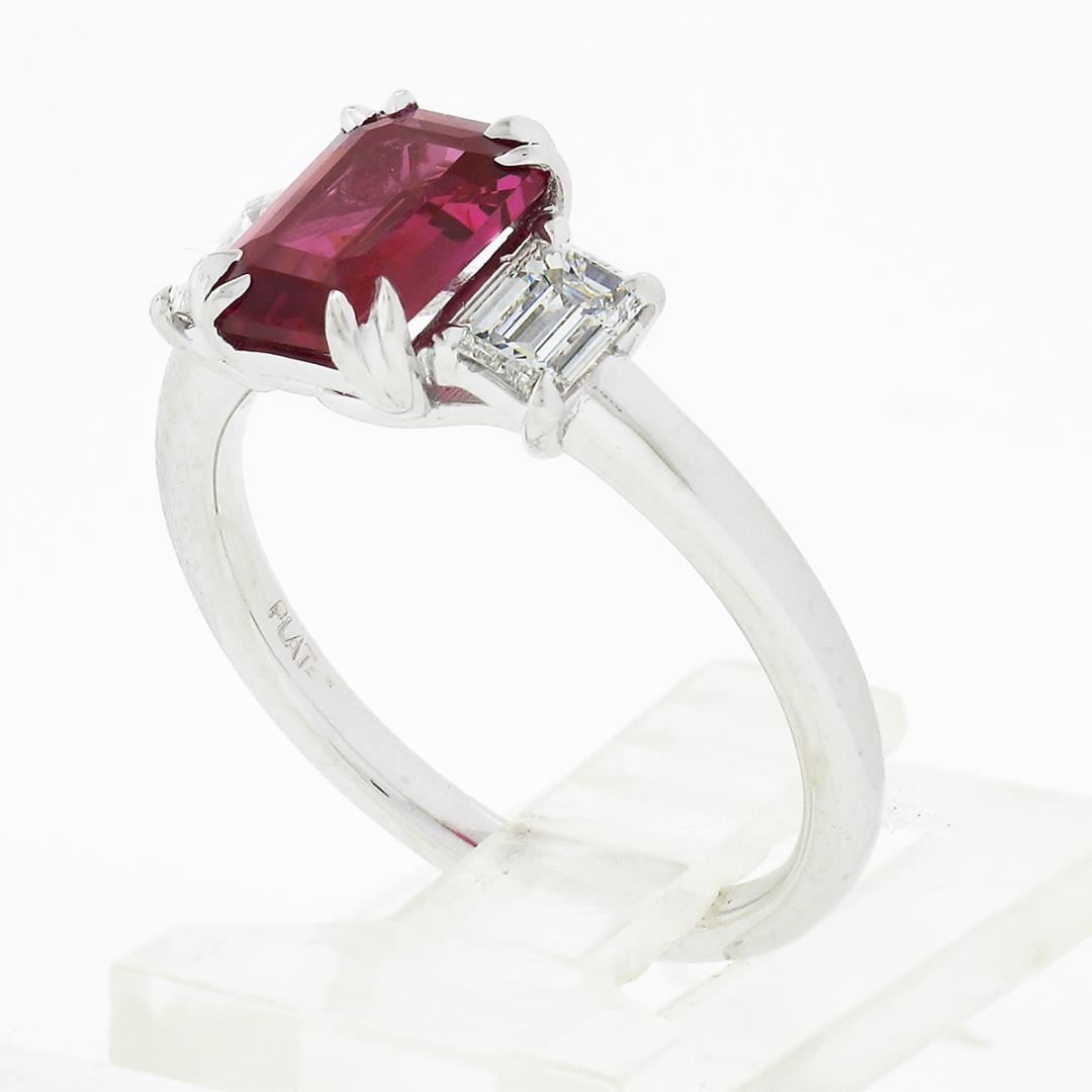 NEW Platinum 2.01ctw GIA NO HEAT Pink Sapphire & Diamond 3 Stone Engagement Ring