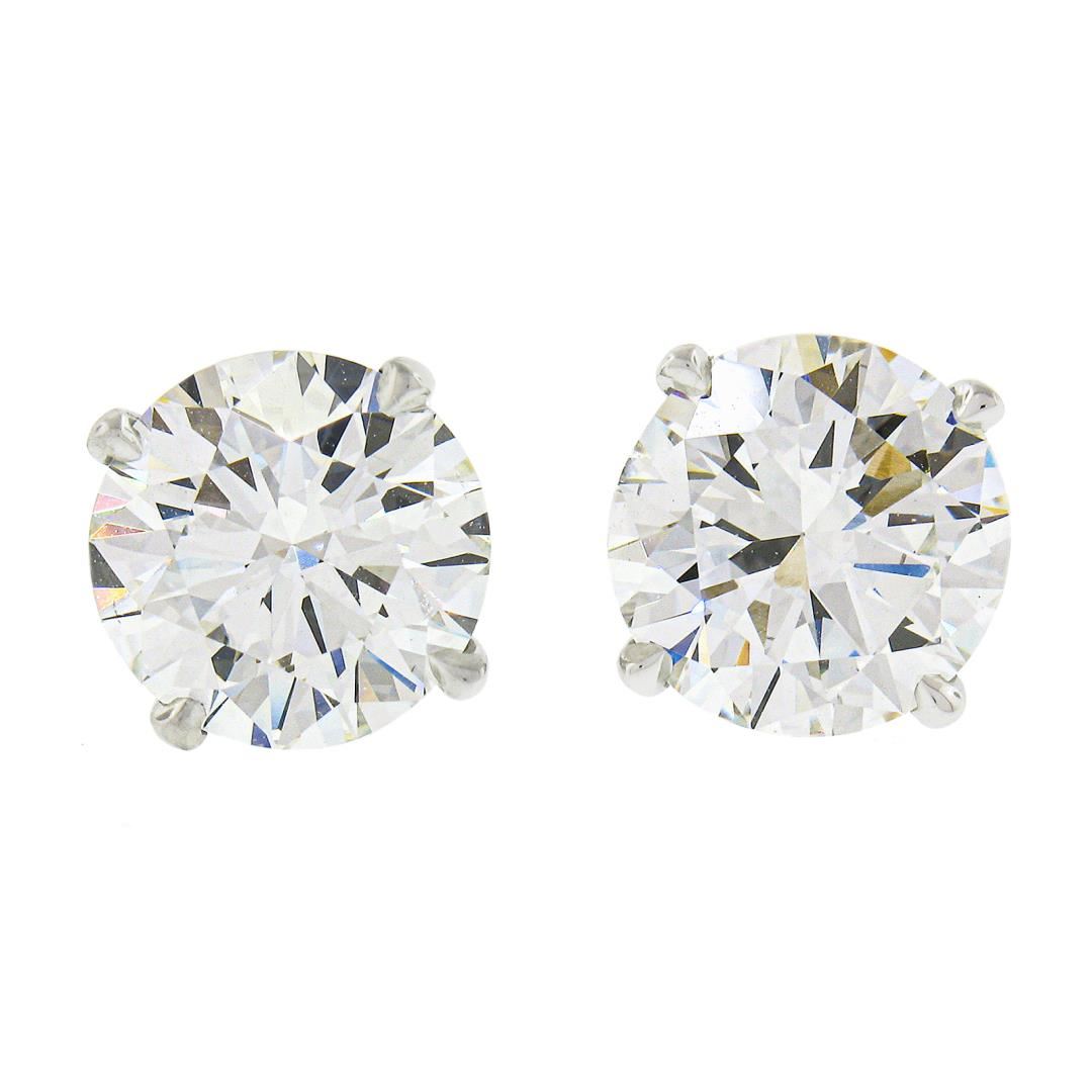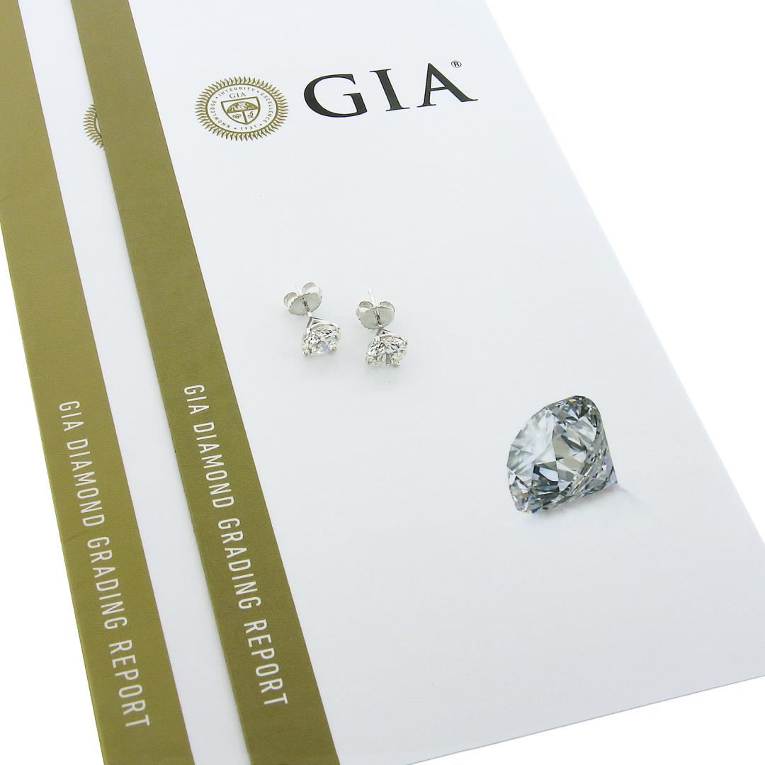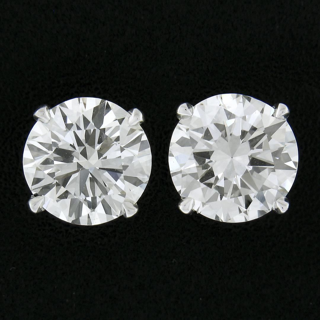 A new solid platinum stud earrings, with 2 GIA graded round cut natural diamonds (3.06ctw). The earrings measure approximately 8.8mm in diameter and weigh a total of 2.74 grams. Comes with all original relevant certifications.