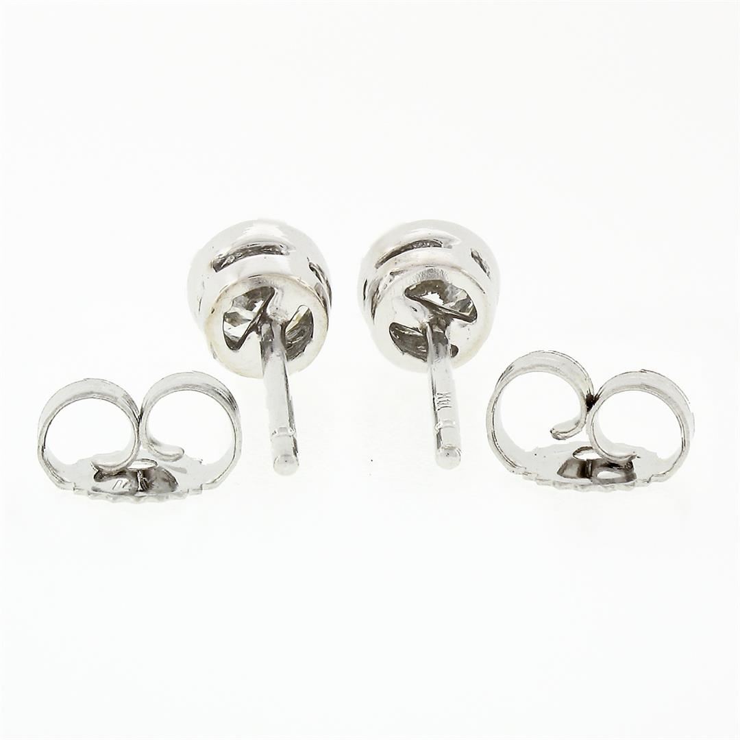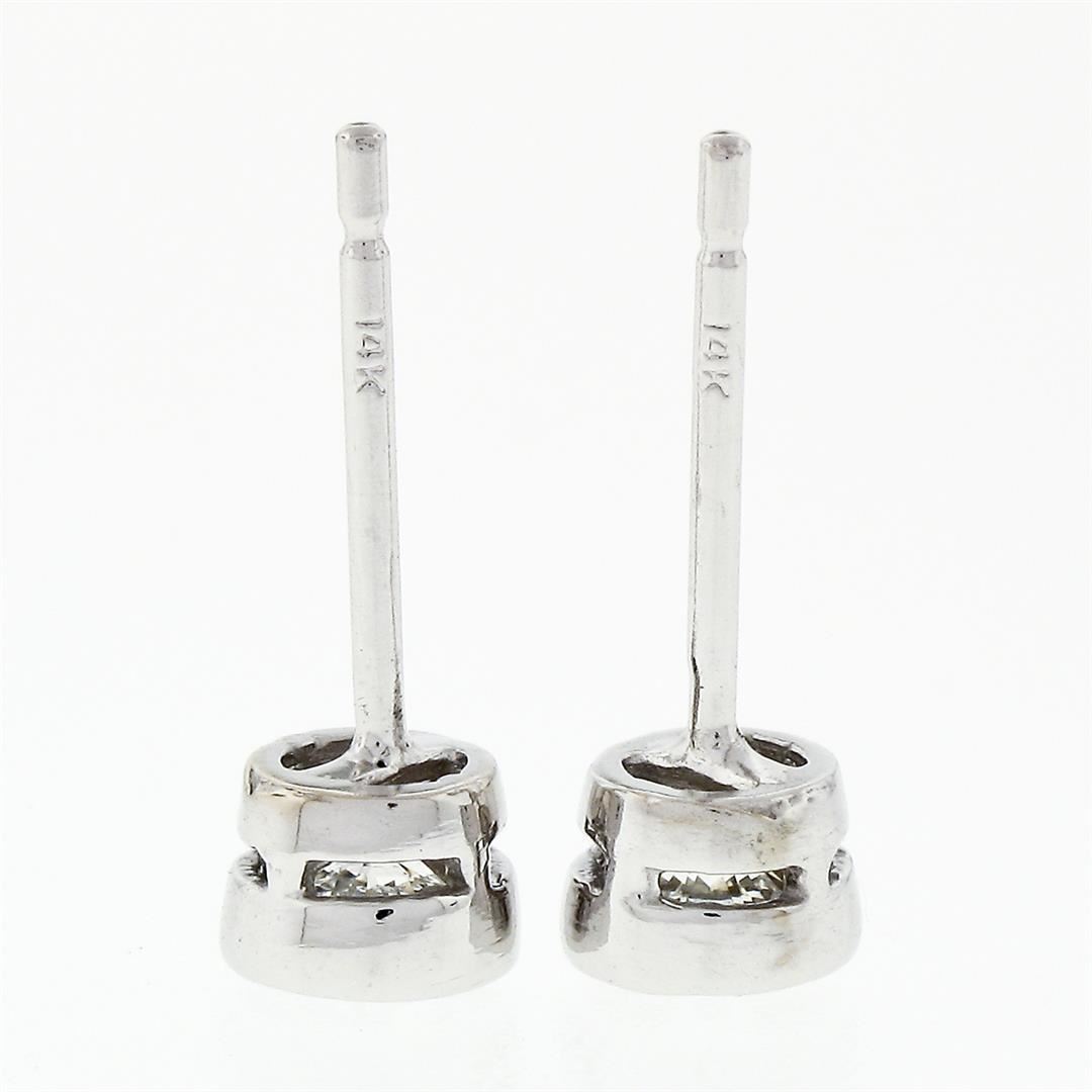 A new solid 14k white gold stud earrings, with 2 round brillaint cut natural diamonds (F/G- VS1/VS2; 0.42ctw). The earrings measure approximately 4.45mm in diameter and weigh a total of 0.78 grams.