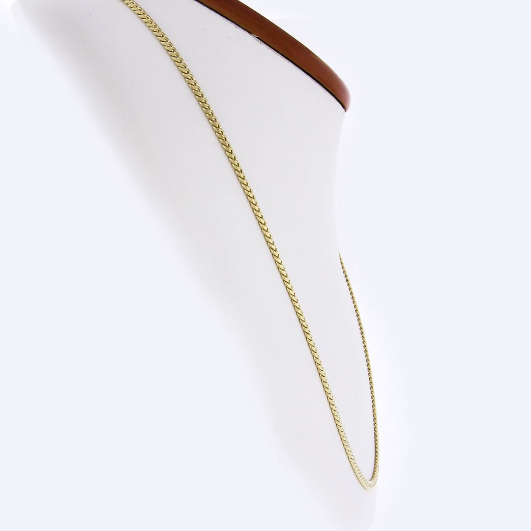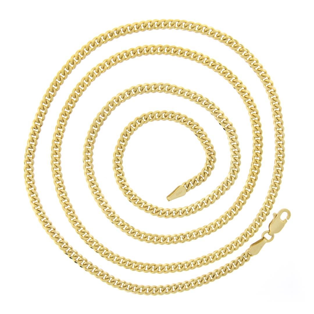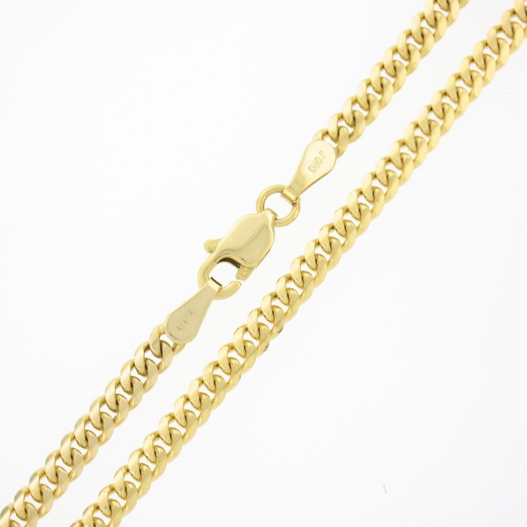 A new solid 14k yellow gold curb link necklace. It weighs a total of 13.9 grams, measures 2.8mm wide, and measures 24 inches in length.