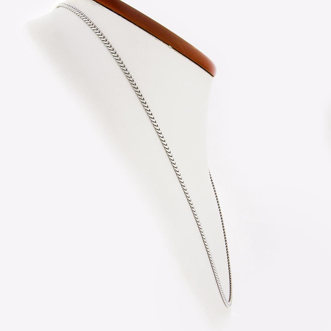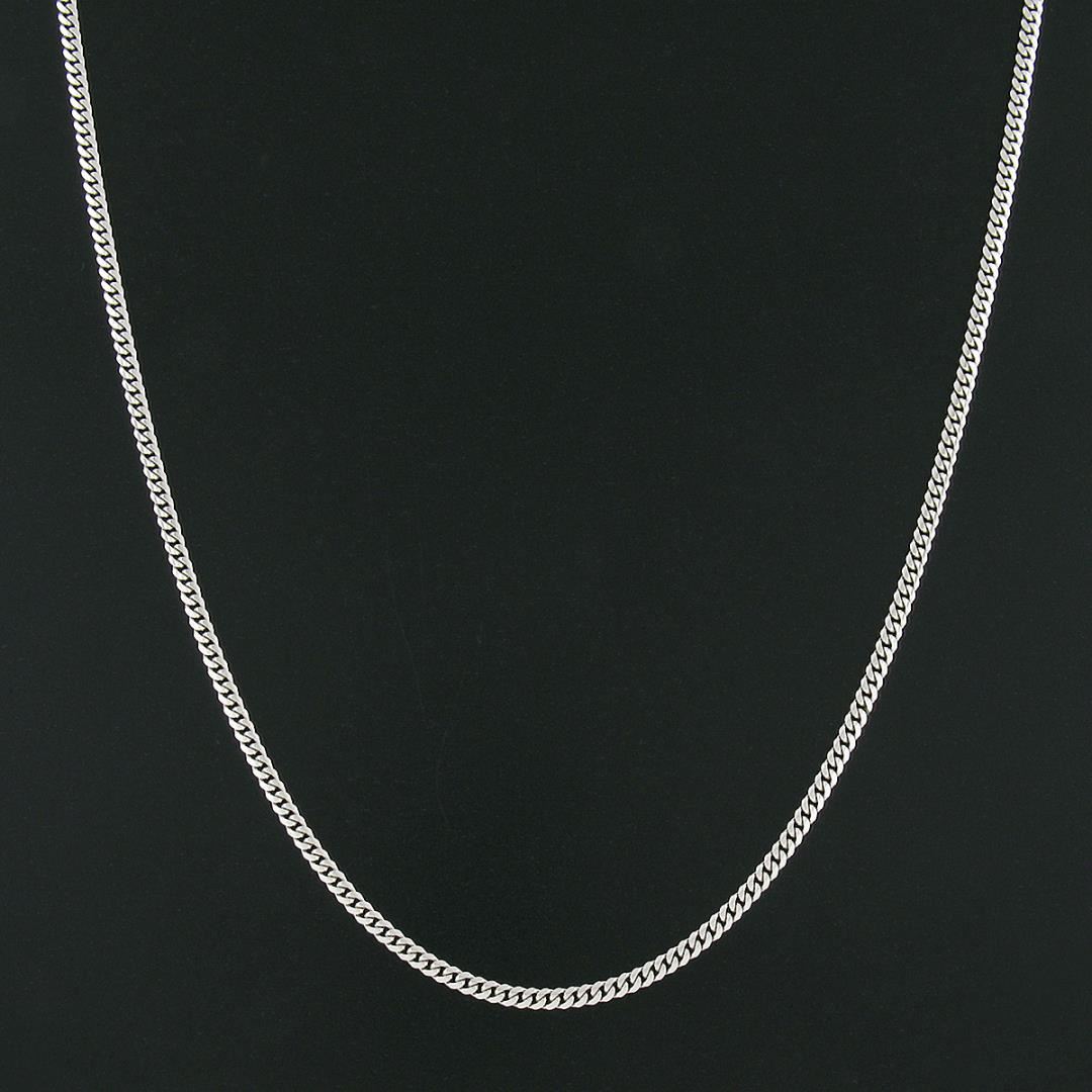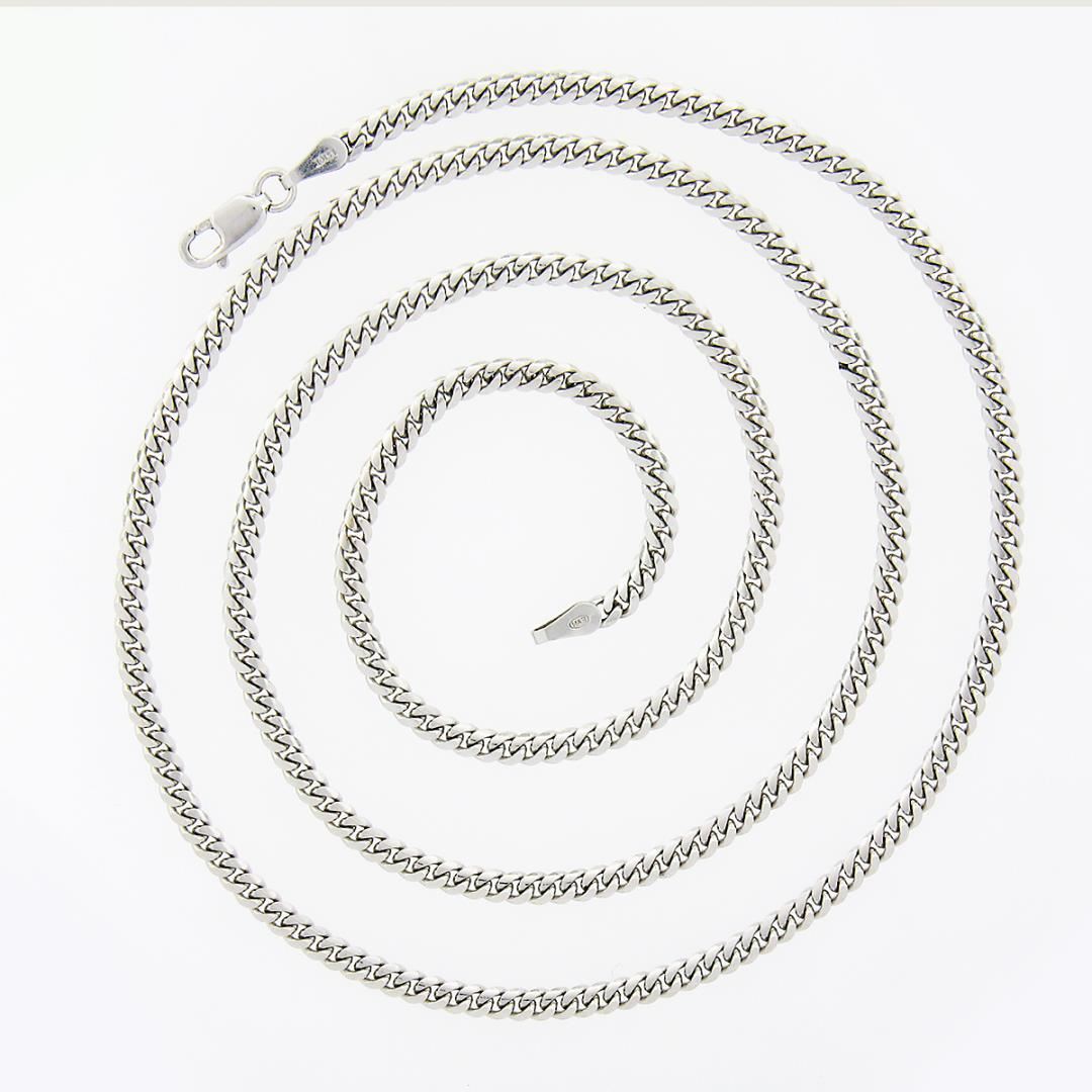 A new solid 14k white gold cuban curb link necklace. It weighs a total of 12.5 grams, measures 2.8mm wide, and measures 22 inches in length.