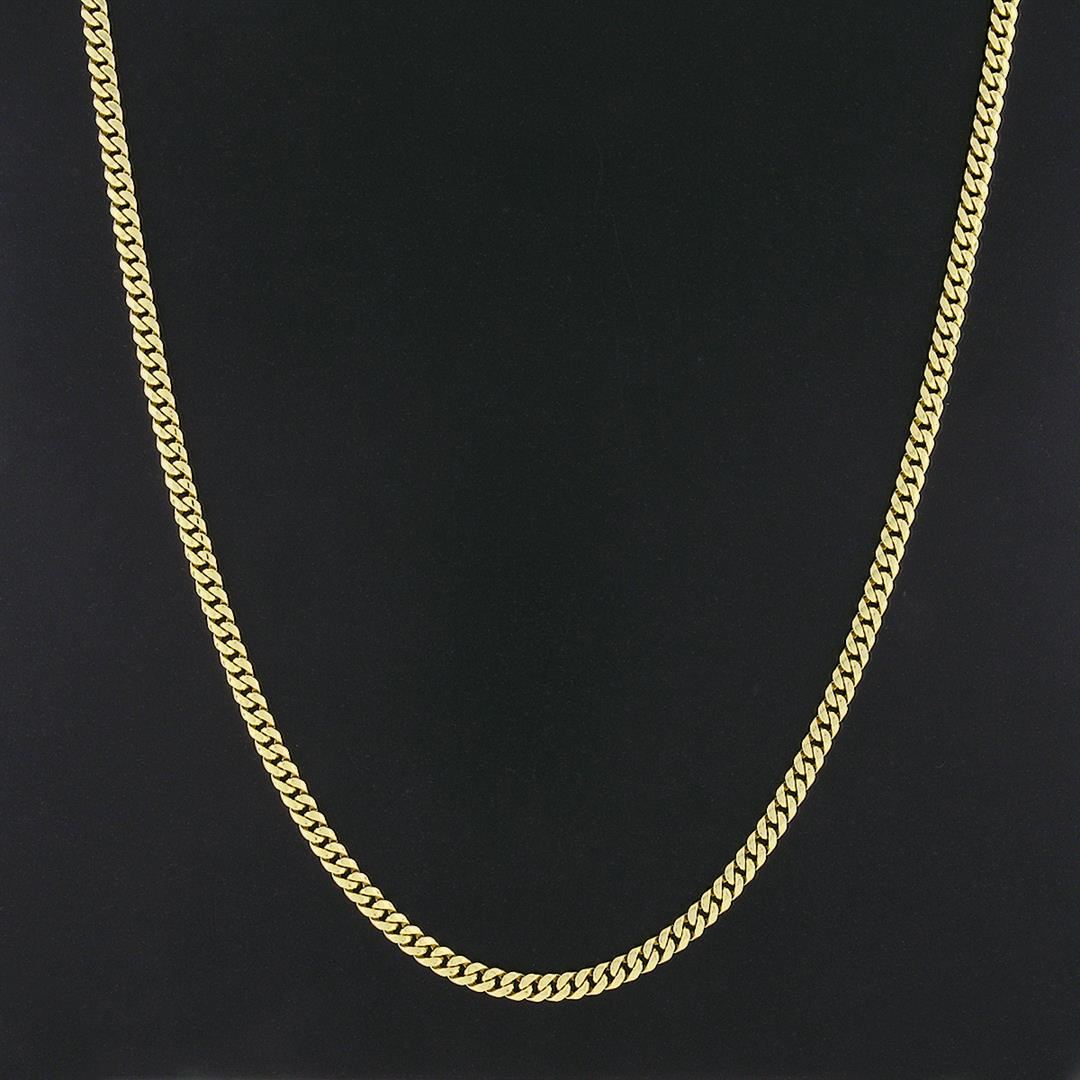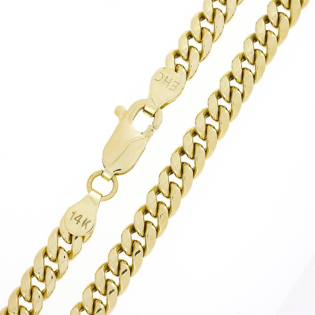 A new solid 14k yellow gold Cuban curb link necklace. It weighs a total of 12 grams, measures 4.4mm wide, and measures 22 inches in length.