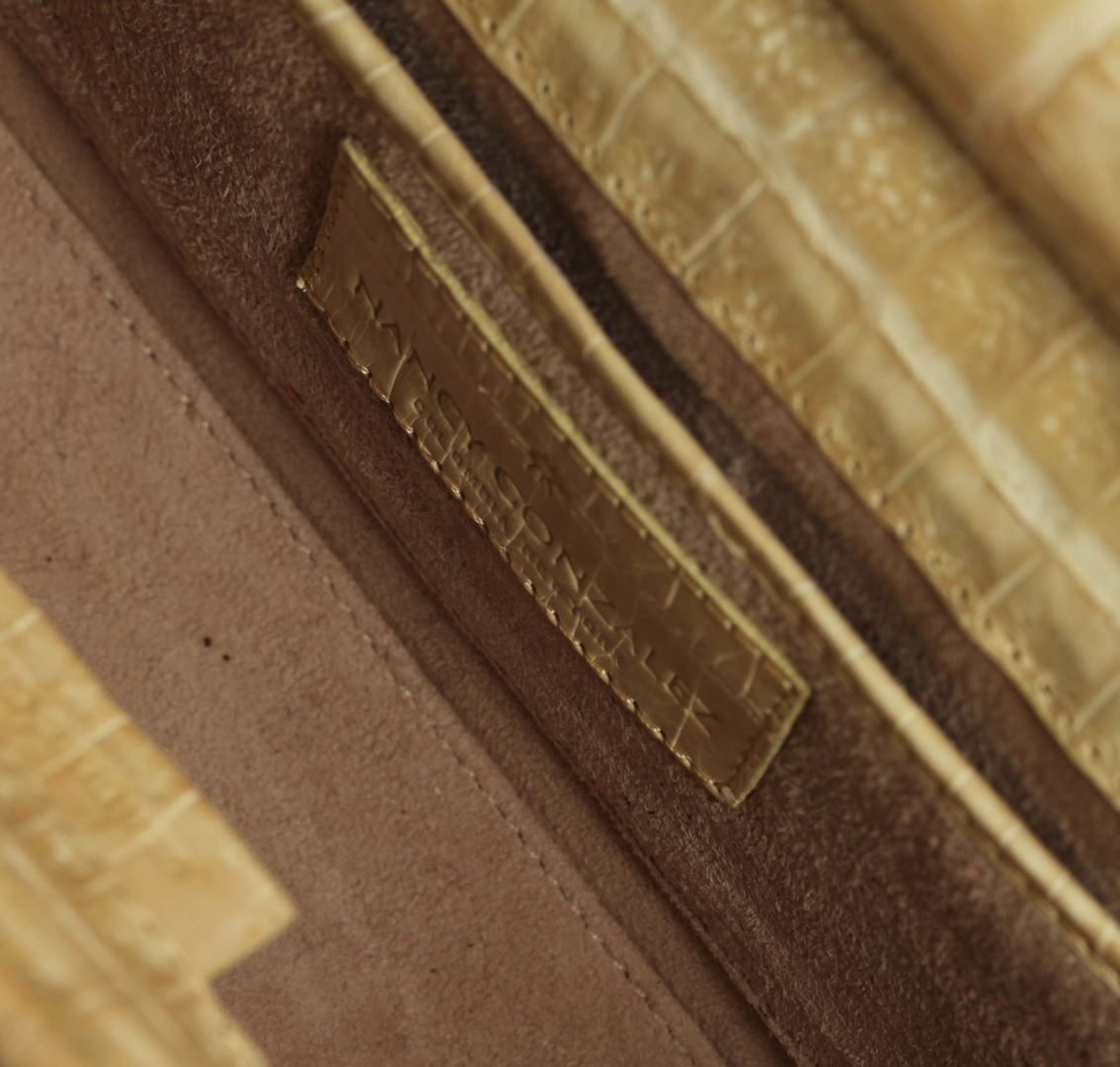 One Nancy Gonzalez Crocodile Clutch Bag. Nancy Gonzalez is considered by many as one of the premier handbag designers in the world. The item is in good condition with light signs of wear. Features: Flap top magnetic closure; suede lining and one interior pocket; highest quality crocodile skin. Measures 9.75"W x 4.75"H. Comes with dust bag.
