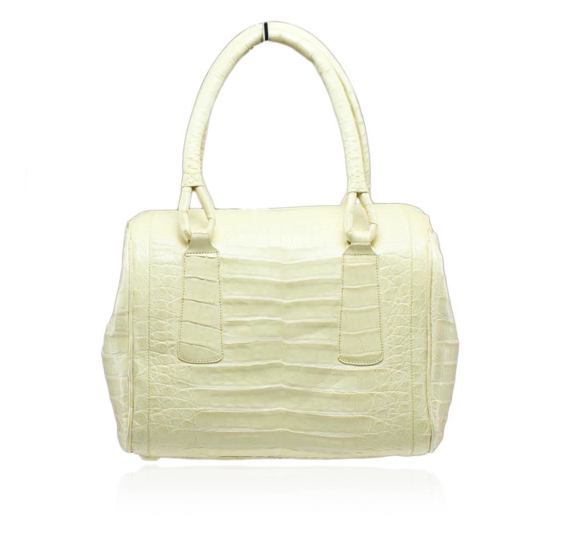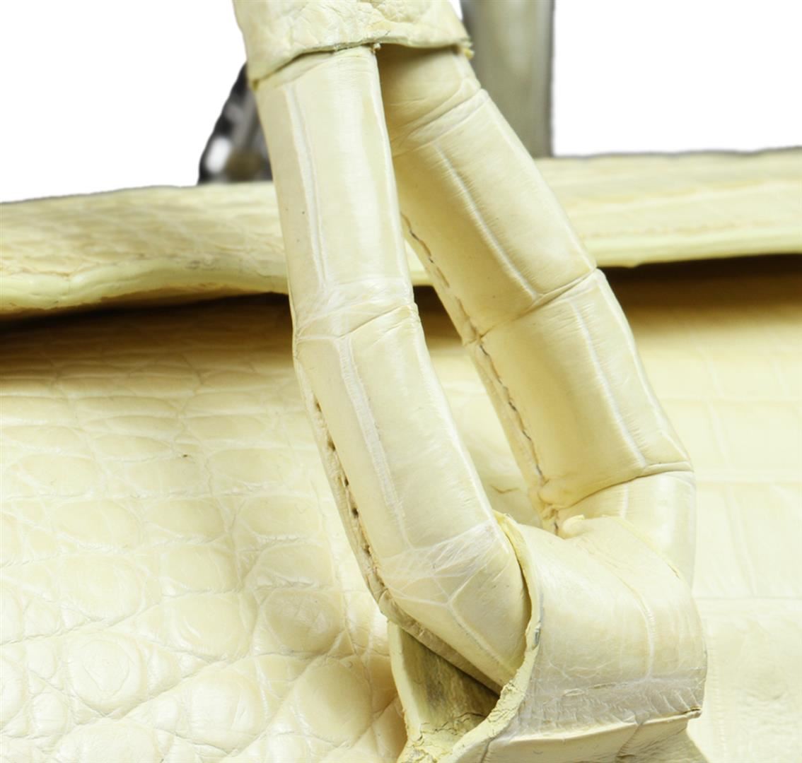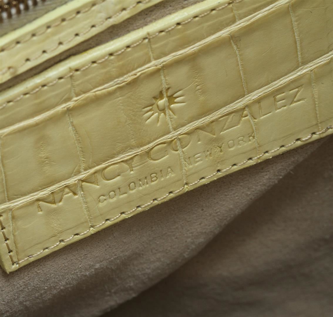 One Nancy Gonzalez yellow Crocodile Top Handle Handbag. This roomy handbag epitomizes everyday sophistication and makes a perfect everyday bag, large enough to hold all your essentials in style. The classic handbag style features double top handles. Made from the highest quality crocodile skin. Estimated retail value $3,790.00.