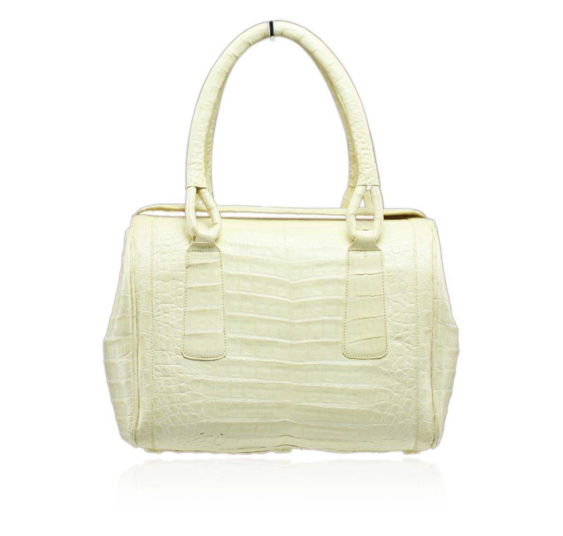 One Nancy Gonzalez yellow Crocodile Top Handle Handbag. This roomy handbag epitomizes everyday sophistication and makes a perfect everyday bag, large enough to hold all your essentials in style. The classic handbag style features double top handles. Made from the highest quality crocodile skin. Estimated retail value $3,790.00.