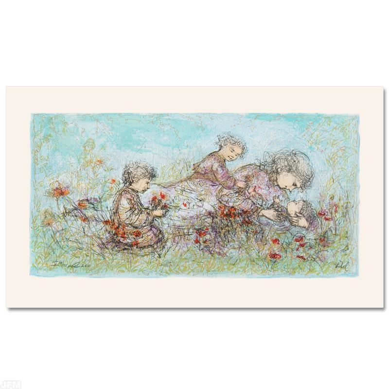 "Natures Caress" is a limited edition lithograph on paper, numbered and hand signed by Edna Hibel (1917-2014). Includes Certificate of Authenticity! Measures approx. 22" x 12" (with border), 17" x 9" (image).