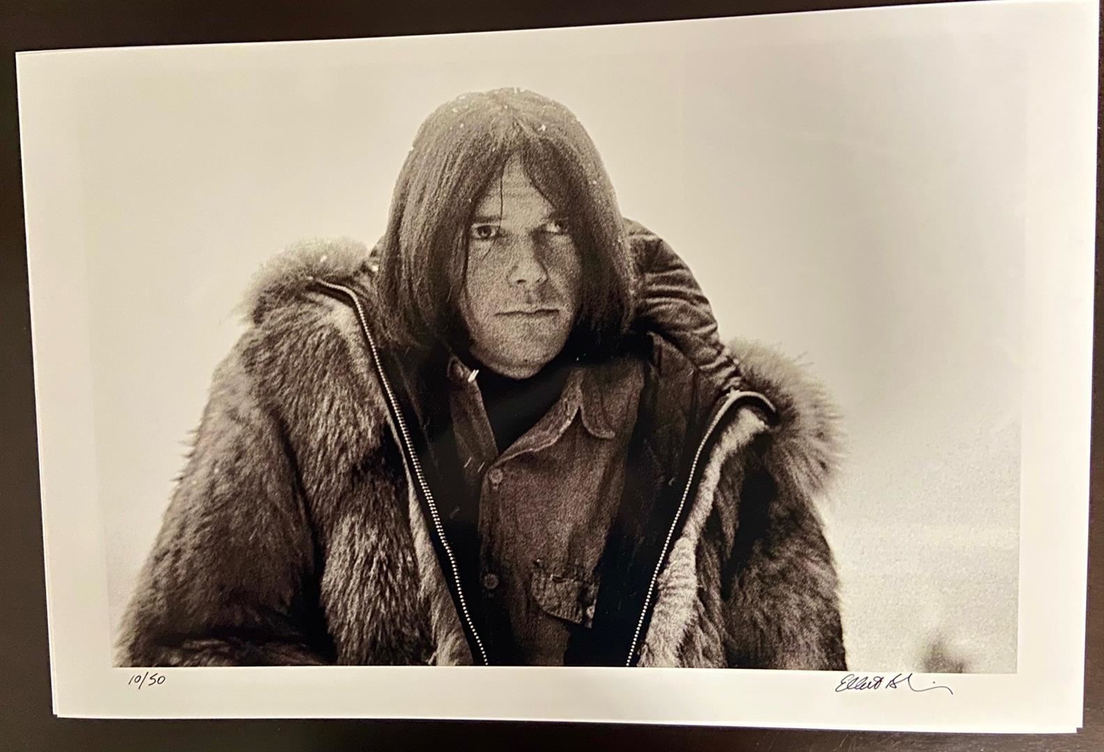 Elliot Blinder on assignment for Rolling Stone, took this s/n 8x10" photo of Neil Young in the snow, Boston 1969.