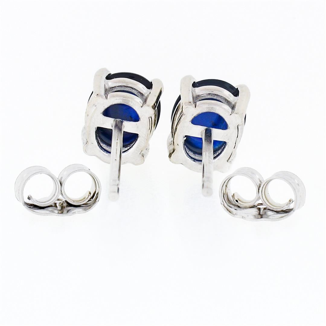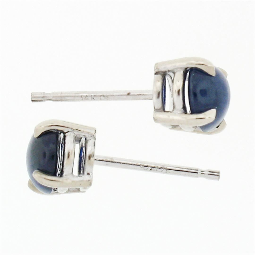 A new pair of solid 14k white gold earrings with 2 oval cabochon cut natural sapphires (6.12x5.21mm and 6.16x5.12; 1.64ctw). The earrings measure approximately 6.2x5.2mm and weigh a total of 1.32 grams.