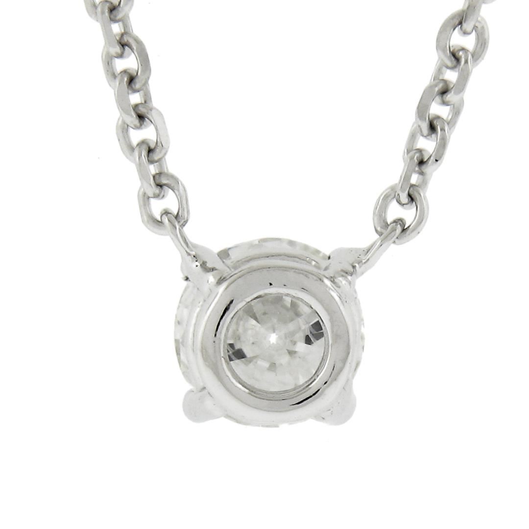 A new solid 14k white gold solitaire pendant necklace, with 1 round cut natural diamond (H - VS1/VS2 ; 0.33ct). Adjustable at 16 or 18 inch cable link chain, 2.38 grams total weight, pendant measures 5.4mm.