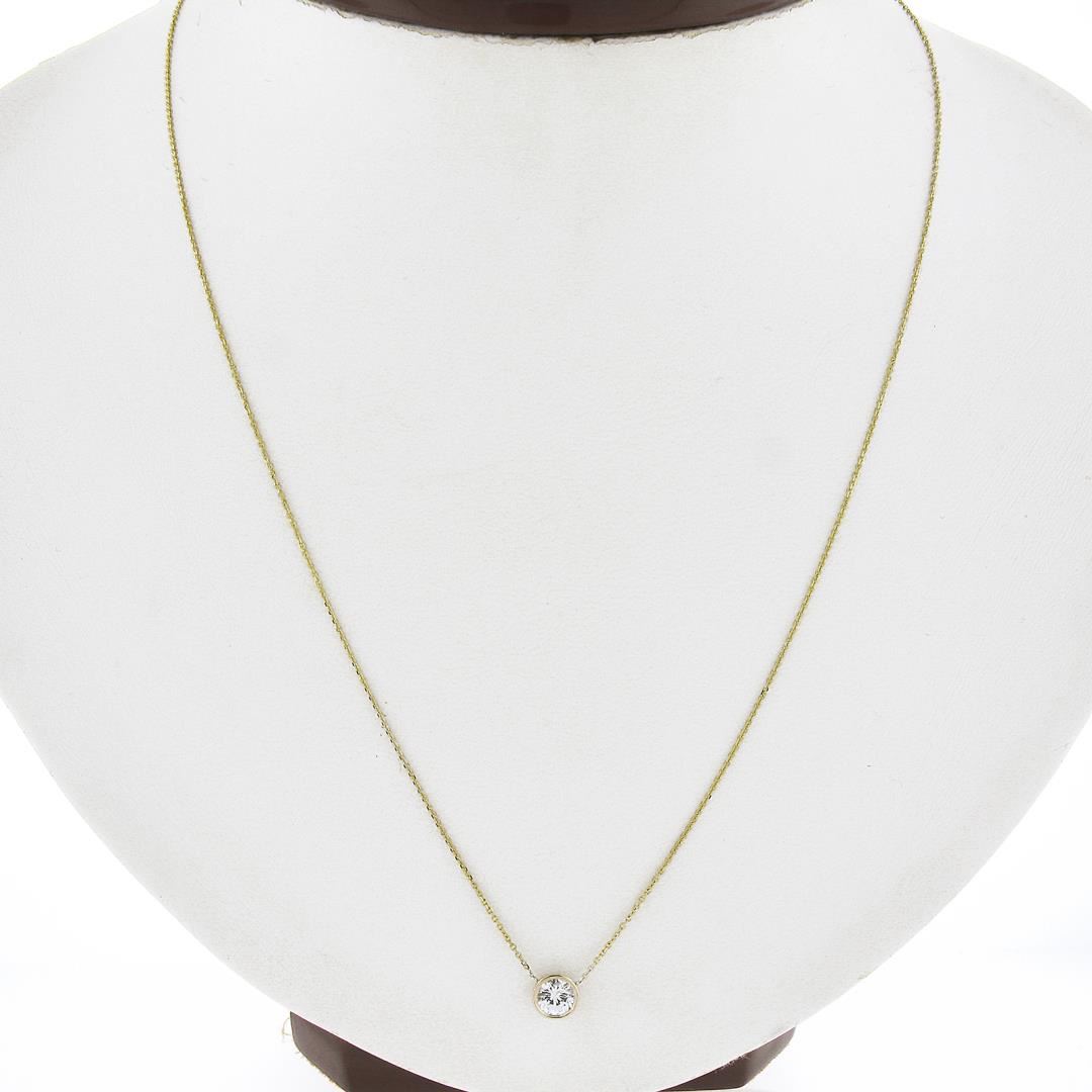 New 14K Gold .35ct Round Brilliant Diamond Solitaire Pendant w/ Adjustable Chain