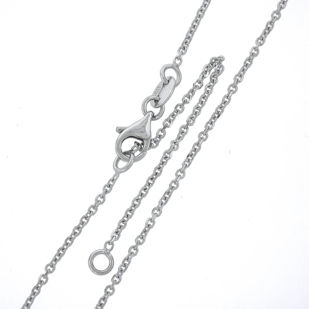 A new solid 14k white gold solitaire pendant necklace, with 1 round cut natural diamond (G- SI1 ; 0.55ct). Adjustable at 16 or 18 inch cable link chain,2.41 grams total weight, pendant measures 6.4mm.