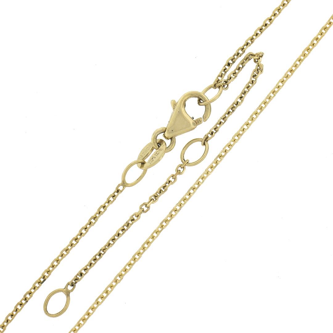 A new solid 14k yellow gold solitaire pendant necklace, with 1 round cut natural diamond (I - VS2 ; 0.67ct). Adjustable at 16, 17 or 18 inch cable link chain, 2.15 grams total weight, pendant measures 6.9mm.