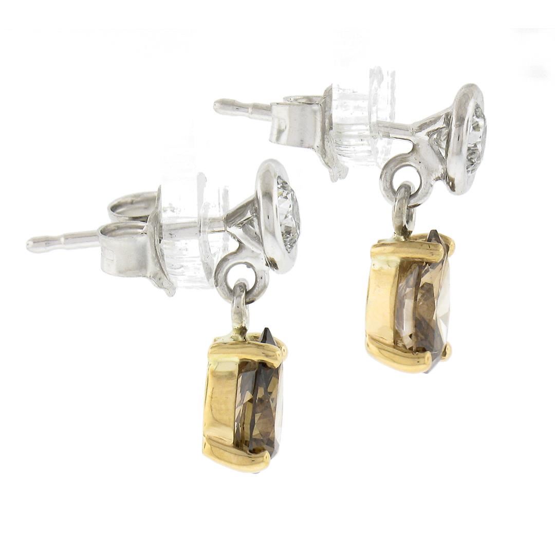 A new solid 14k yellow & white gold teardrop earrings, with 2 round cut natural diamonds (F/G - VS1/VS2 ; 0.41ctw), and 2 pear cut natural fancy brown diamonds (VS1/VS2 ; 1.01ctw). The earrings measure approximately 12.9x5.2mm and weigh a total of 1.50 grams.