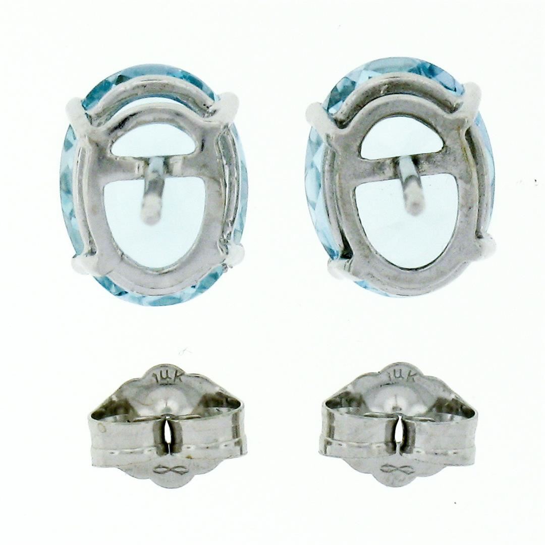 A new solid 14k white gold stud earrings, with 2 oval cut natural aquamarine (6.95x9.0mm - 2.84ctw ). The earrings measure approximately 9.0x6.95mm and weigh a total of 2.84 grams.