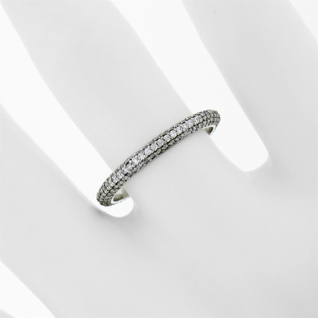 A new solid 14k white gold eternity band ring, with 165 round brilliant cut natural diamonds (G/H- VS2/SI1; 0.85ctw). The ring is size 6.5, weighs a total of 1.70 grams, and measures 2.30mm wide.