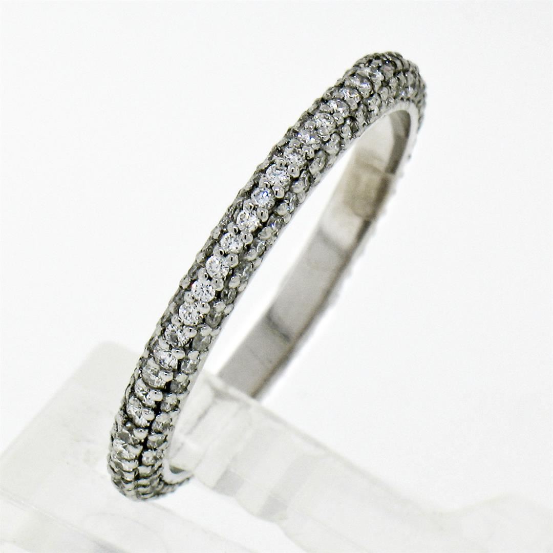 A new solid 14k white gold eternity band ring, with 165 round brilliant cut natural diamonds (G/H- VS2/SI1; 0.85ctw). The ring is size 6.5, weighs a total of 1.70 grams, and measures 2.30mm wide.