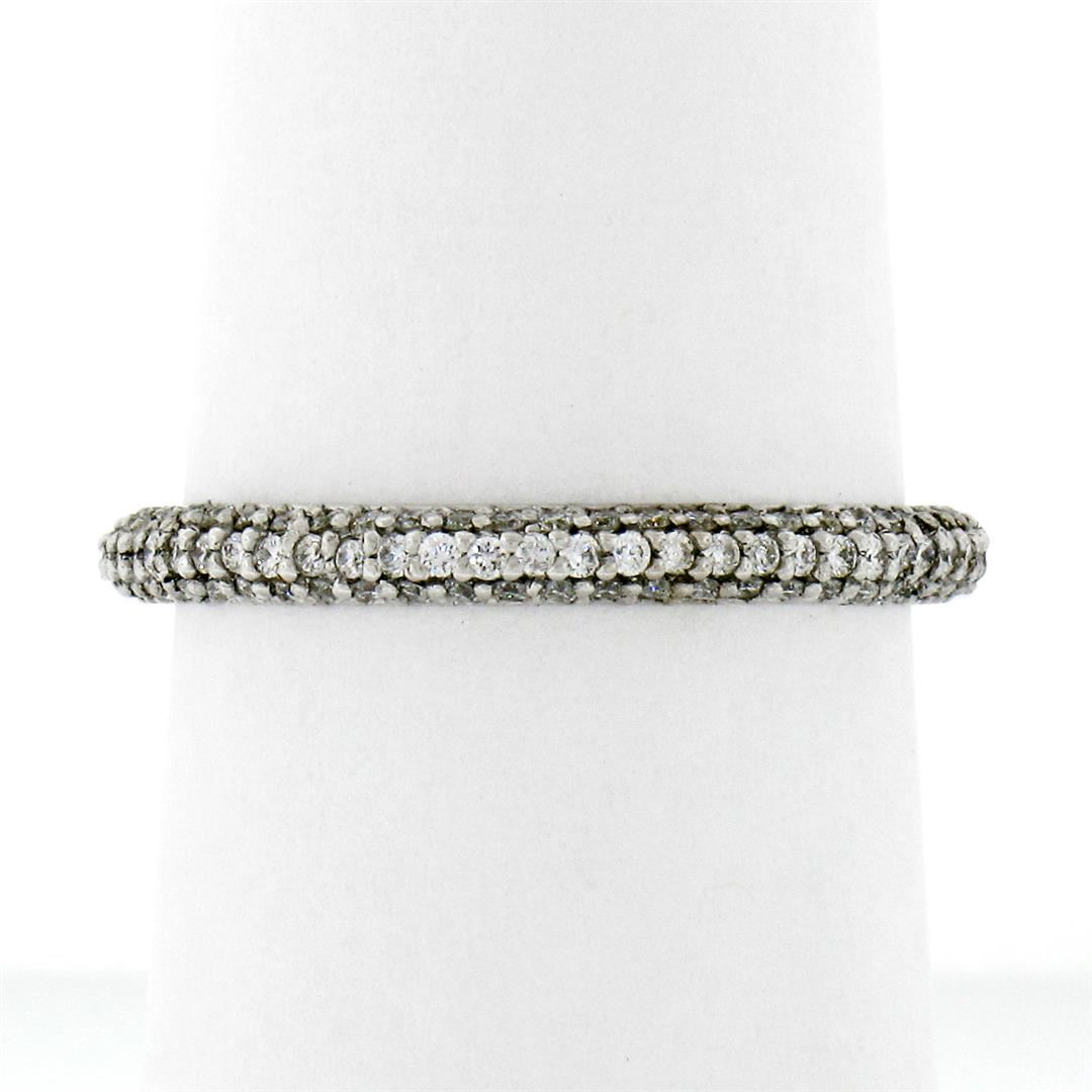 A new solid 14k white gold eternity band ring, with 165 round brilliant cut natural diamonds (G/H- VS2/SI1; 0.85ctw). The ring is size 6.5, weighs a total of 1.70 grams, and measures 2.30mm wide.